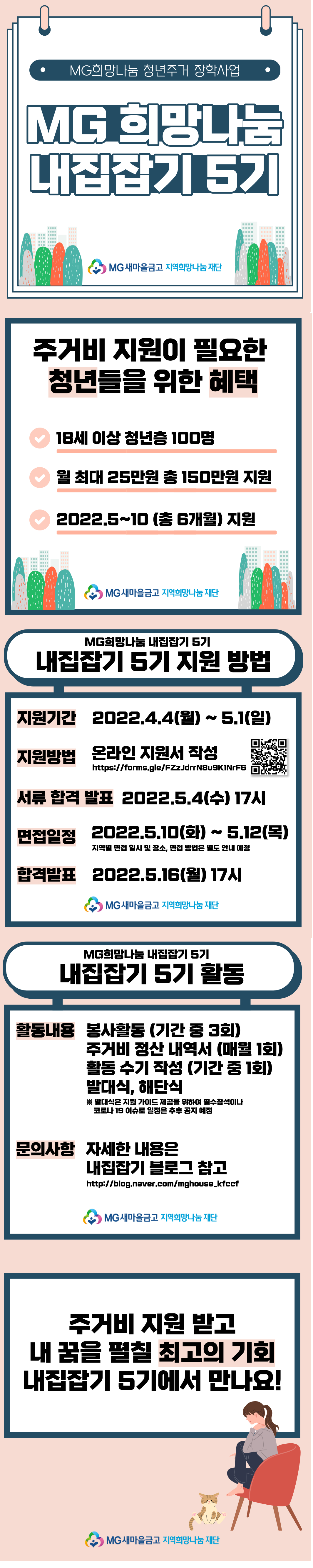 MG희망나눔 청년주거 장학사업은 복지 사각지대에 있는 청년들을 대상으로 주거공간 지원