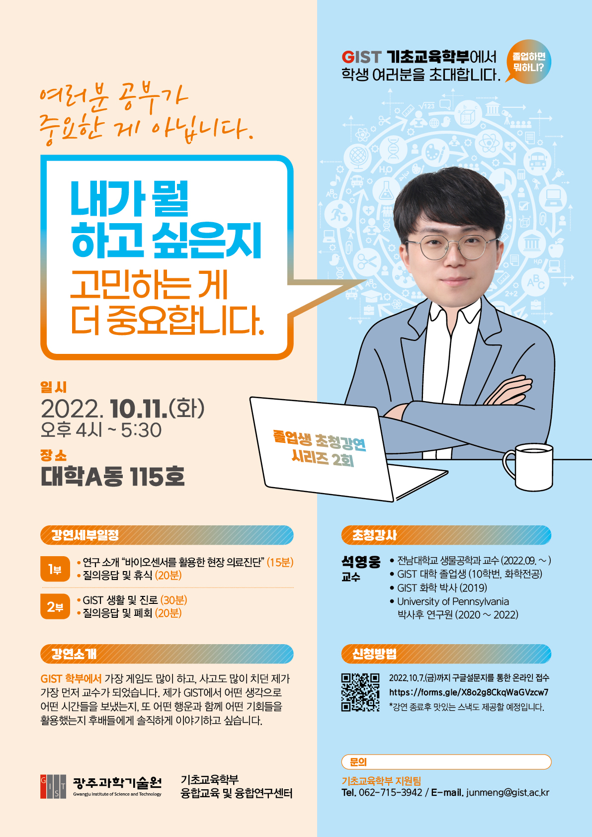 ![external_image [기초교육학부] 졸업생 초청강연 시리즈 2회 - 22.10.11(화) 오후 4시, 대학A 115호 사진_1](https://www.gist.ac.kr/_prog/download/?editor_image=20220926155407430_VNHWBS8O.png)