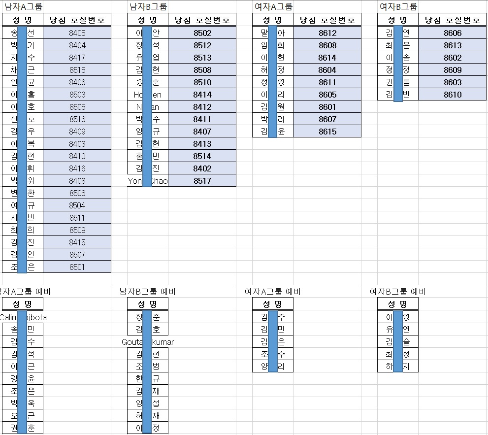 2018년 8동 1인실 추첨결과 공지합니다.