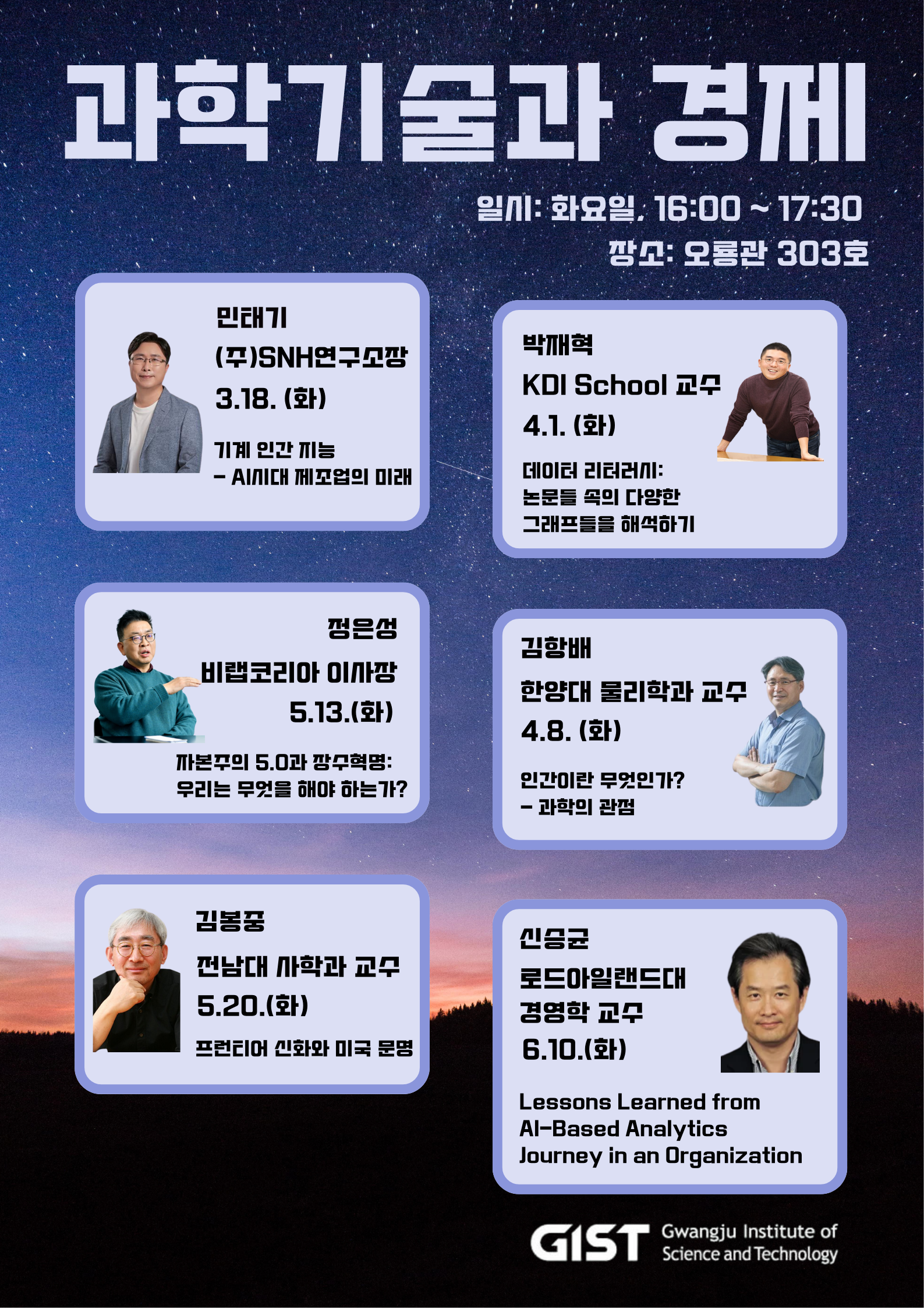 과학기술과 경제 강연 일정 변경 재안내를 하오니 여러분의 많은 관심 부탁드립니다.