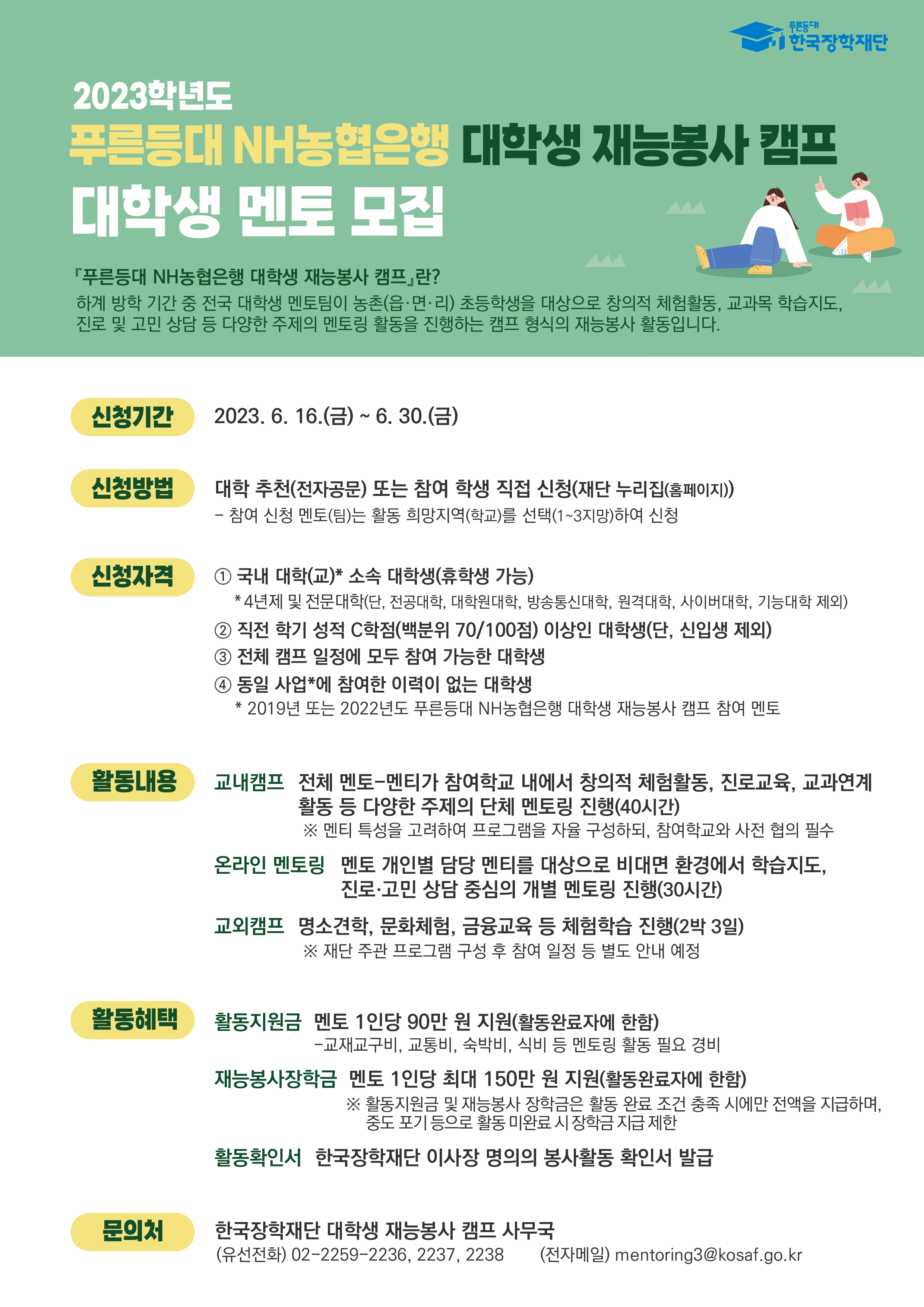□ 사업 문의: (한국장학재단) 대학생 재능봉사 캠프 사무국