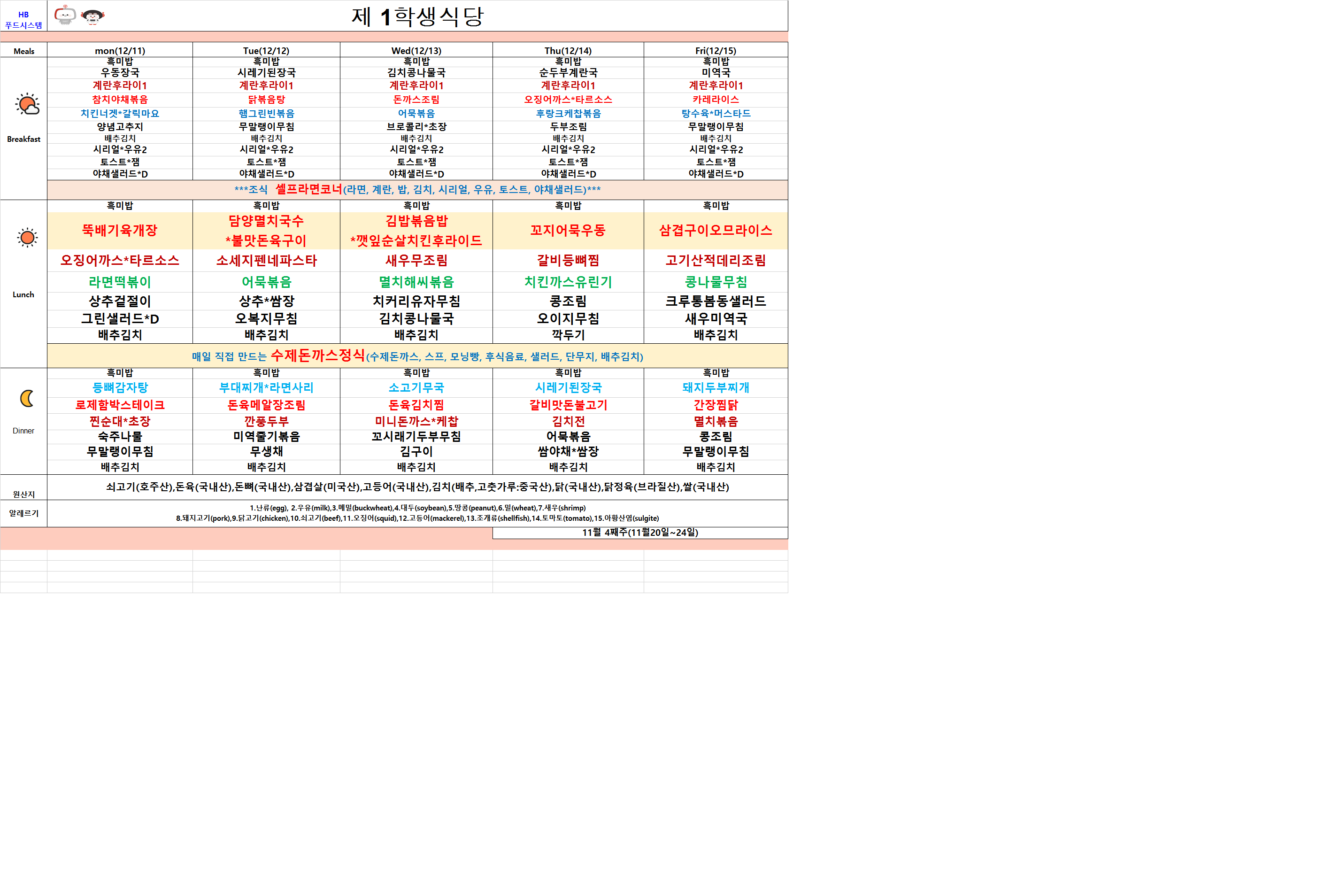 2023년 12월11일~12월15일 식단표