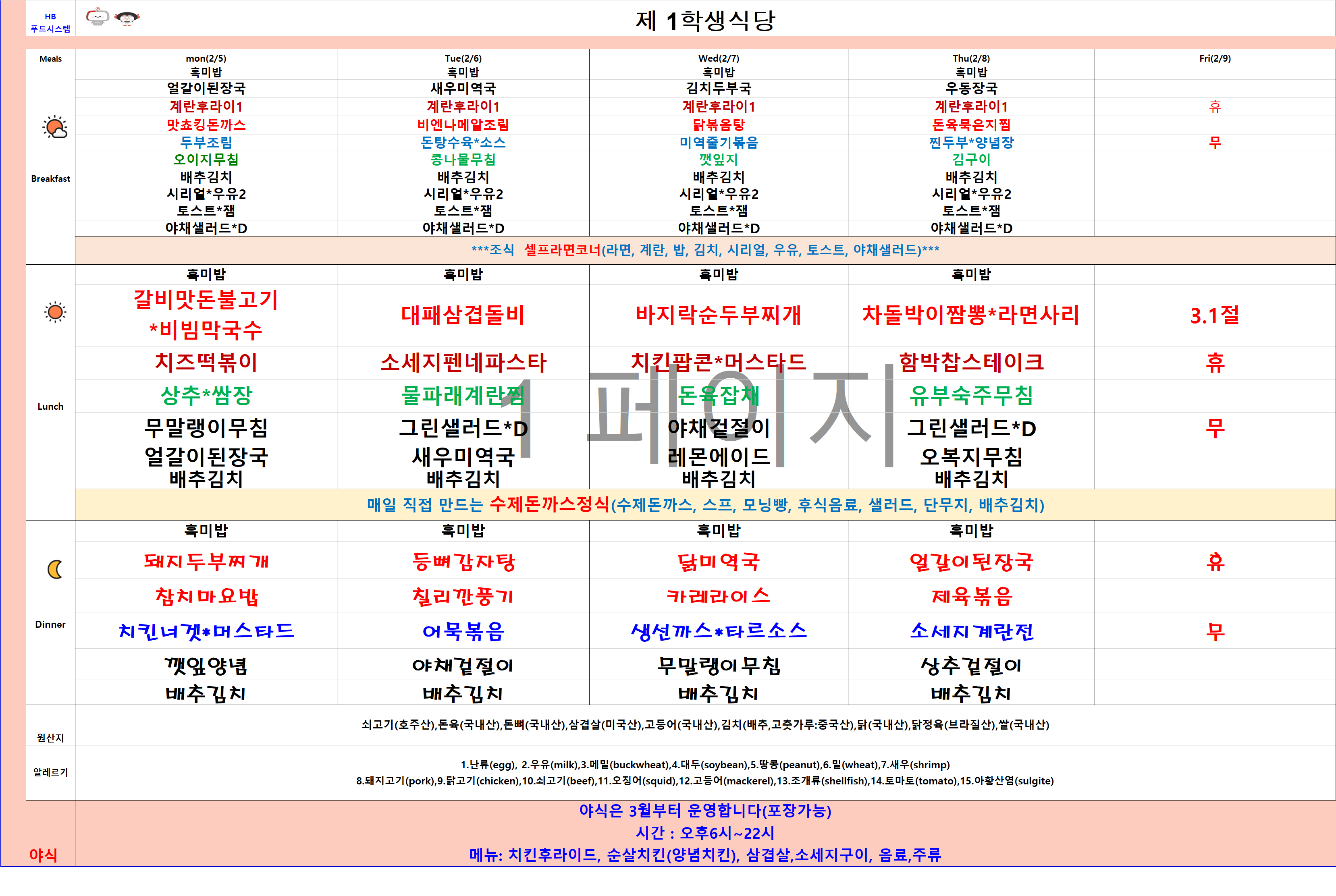 2024년 2월26일~3월1일 식단표