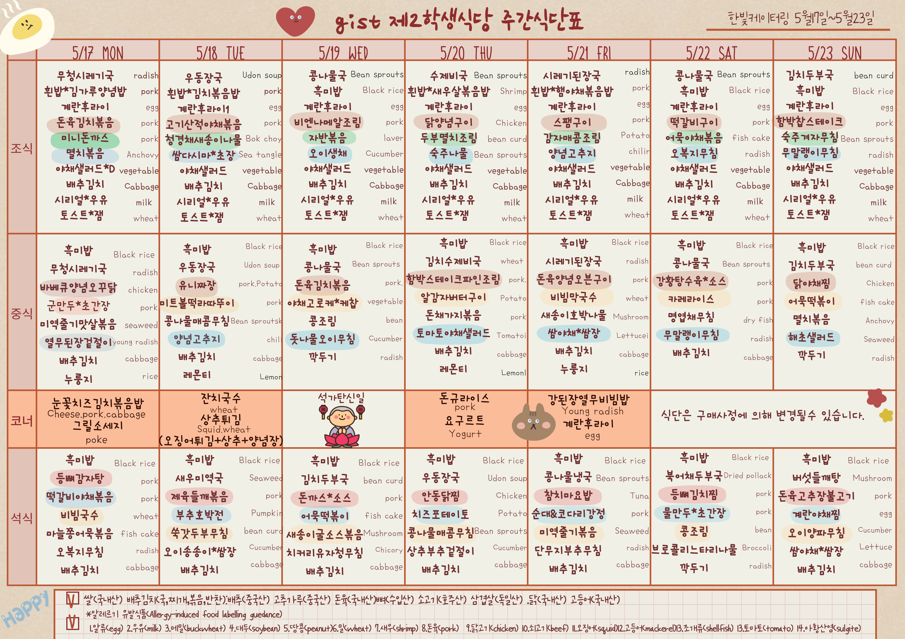제2학생식당주간식단표(2021.05.17~2021.05.23)