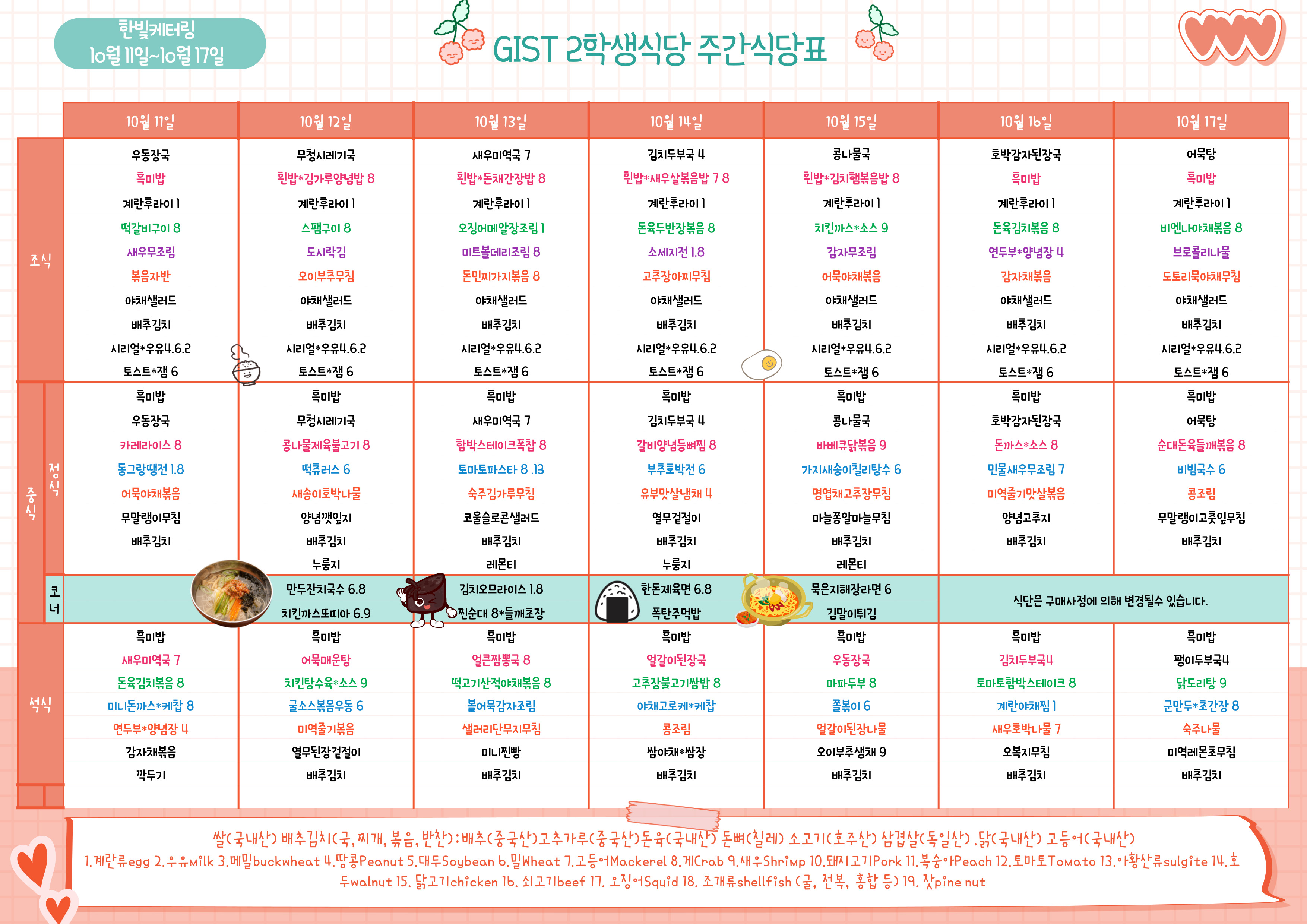 제2학생식당주간식단표(2021.10.11~2021.10.17)