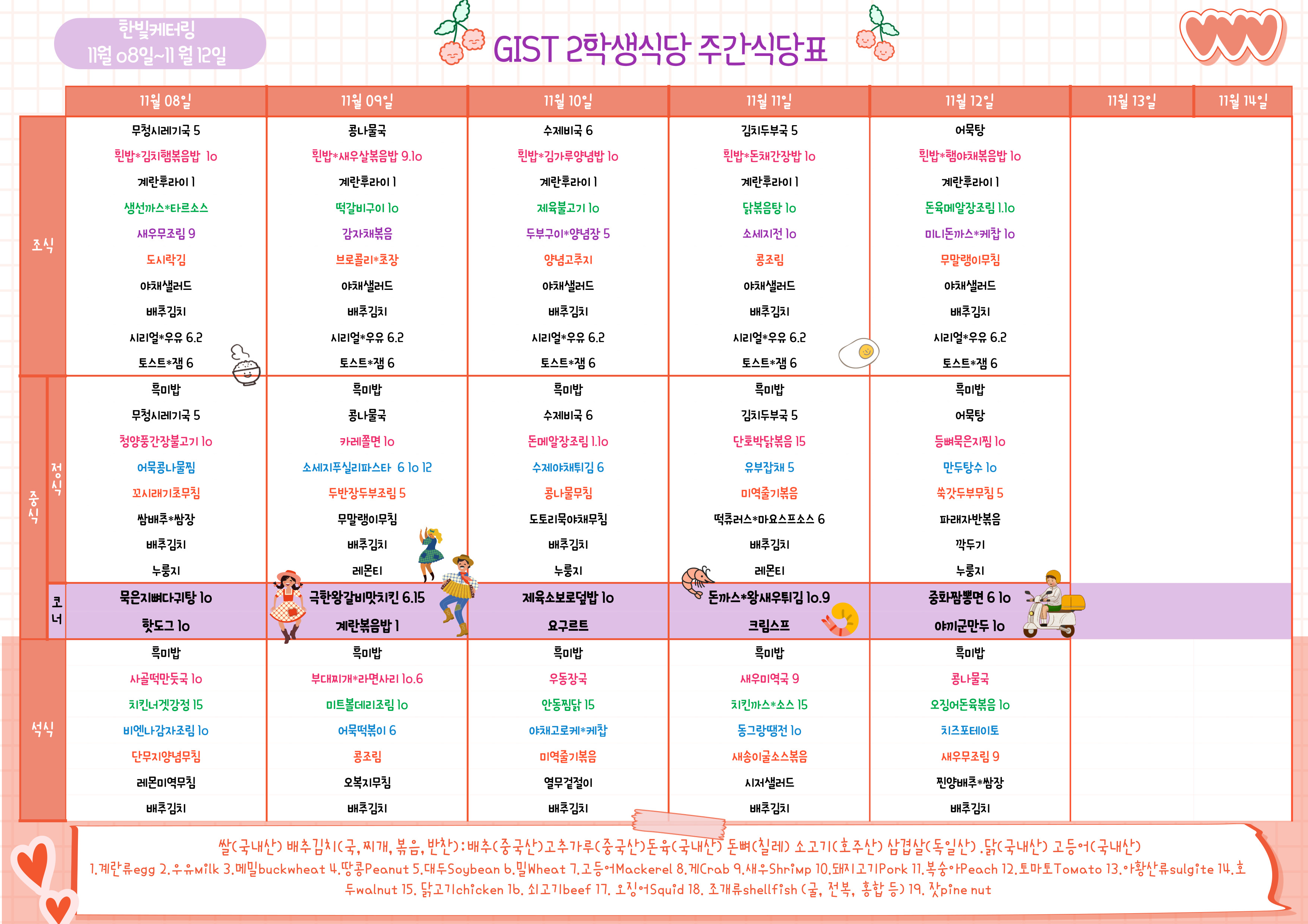 제2학생식당주간식단표(2021.11.8~11.12)
