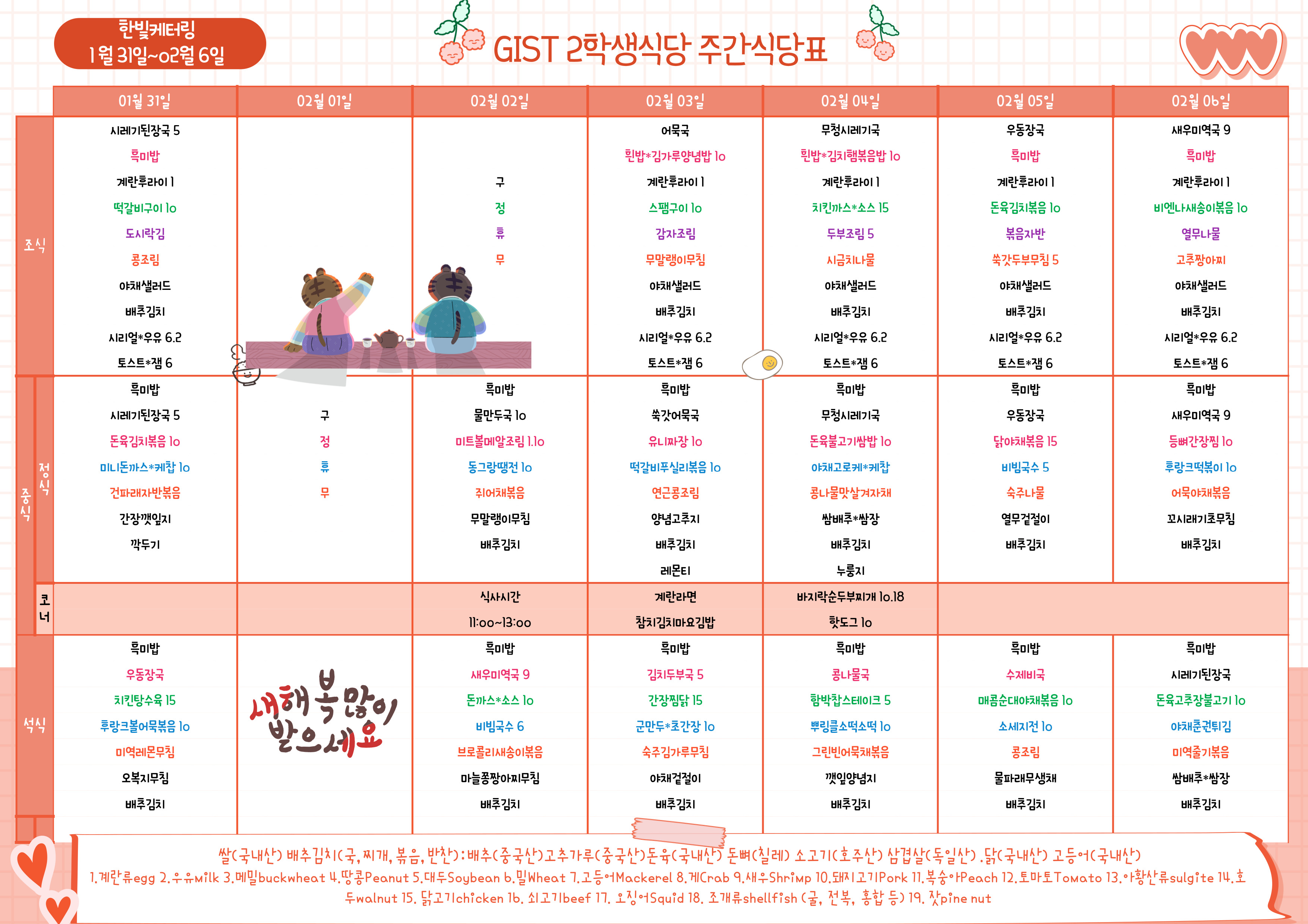 제2학생식당주간식단표(2022.01.31~2021.02.06)
