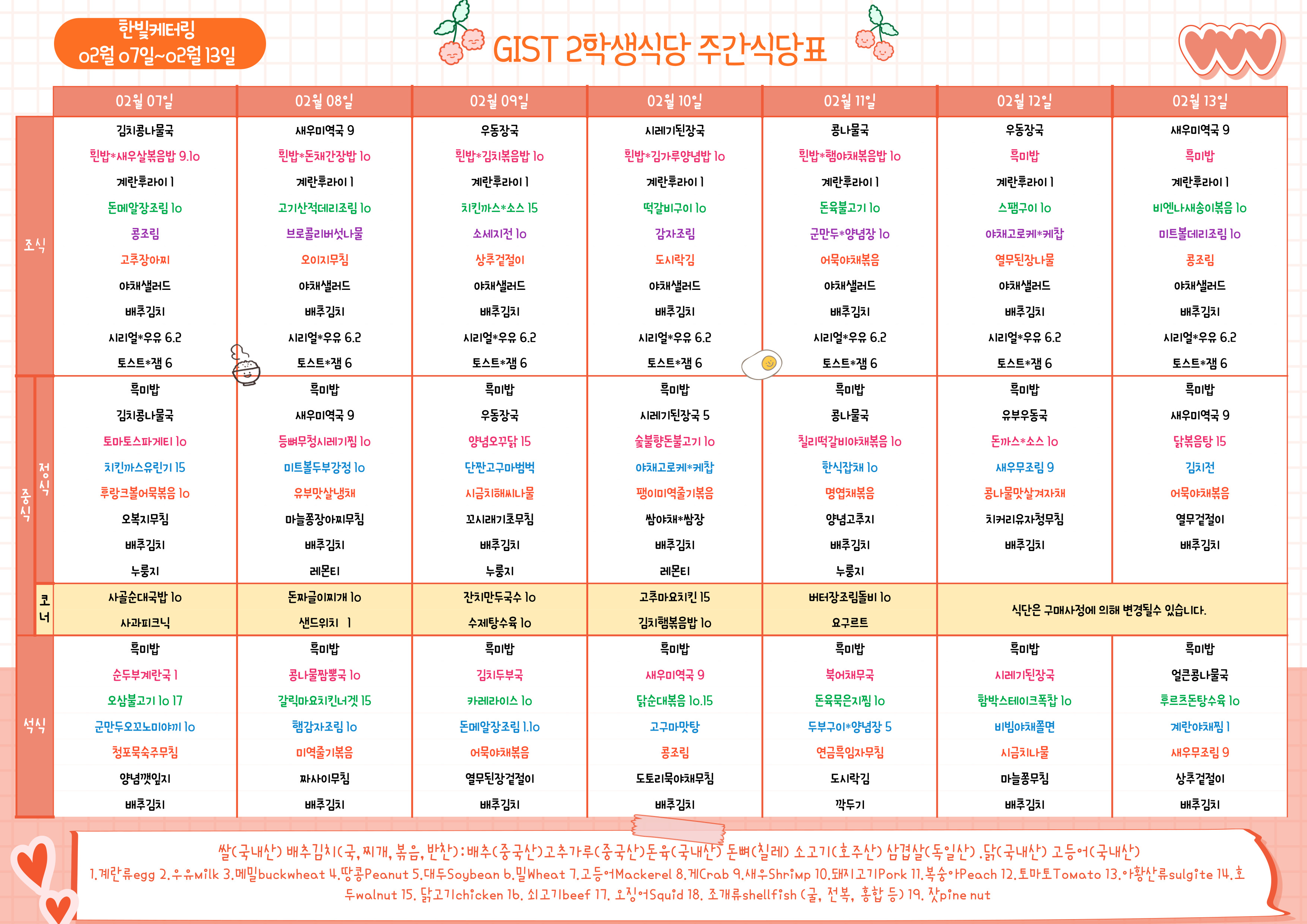 제2학생식당주간식단표(2022.02.07~2021.02.13)
