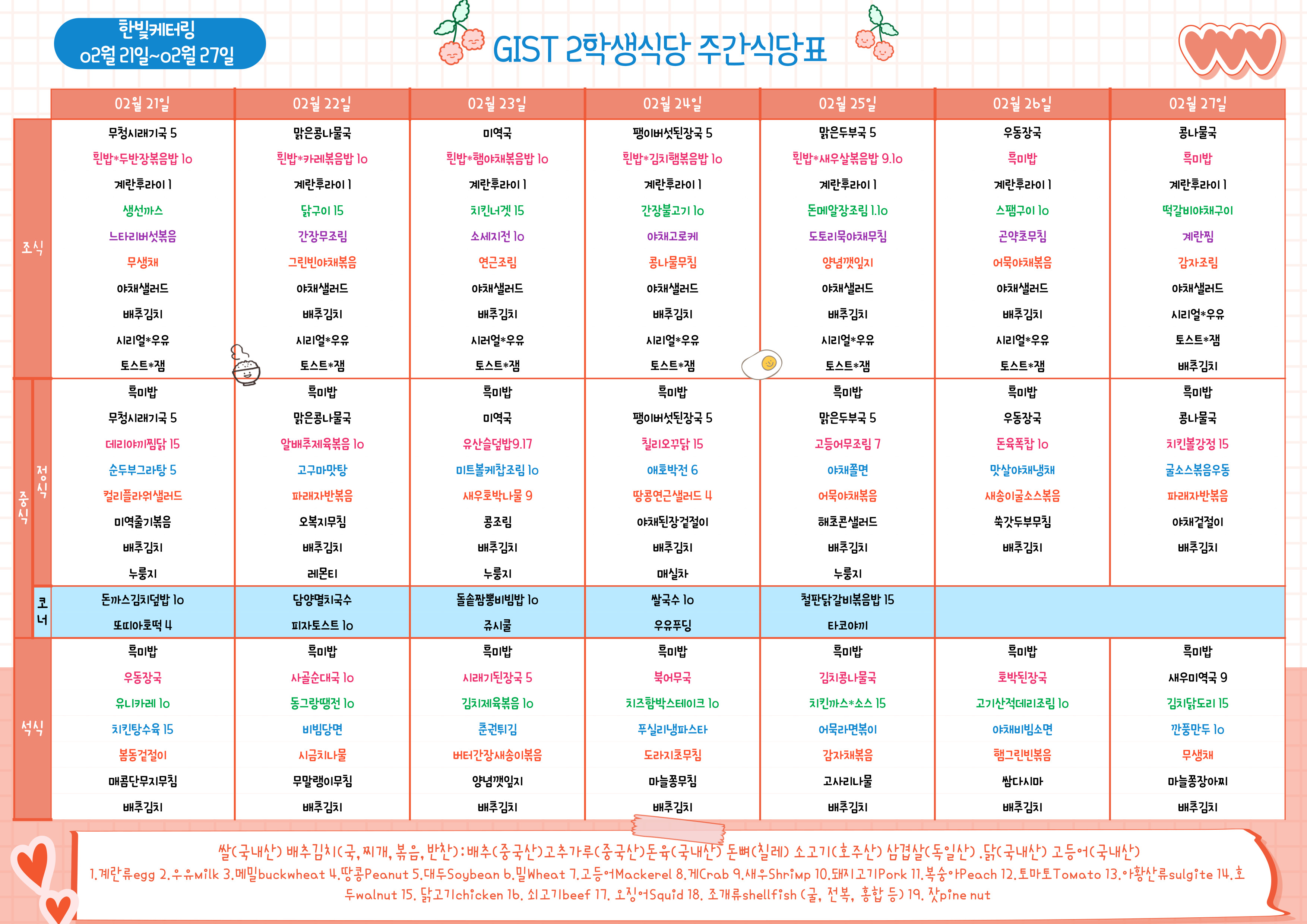제2학생식당주간식단표(2022.02.21~22.02.27)
