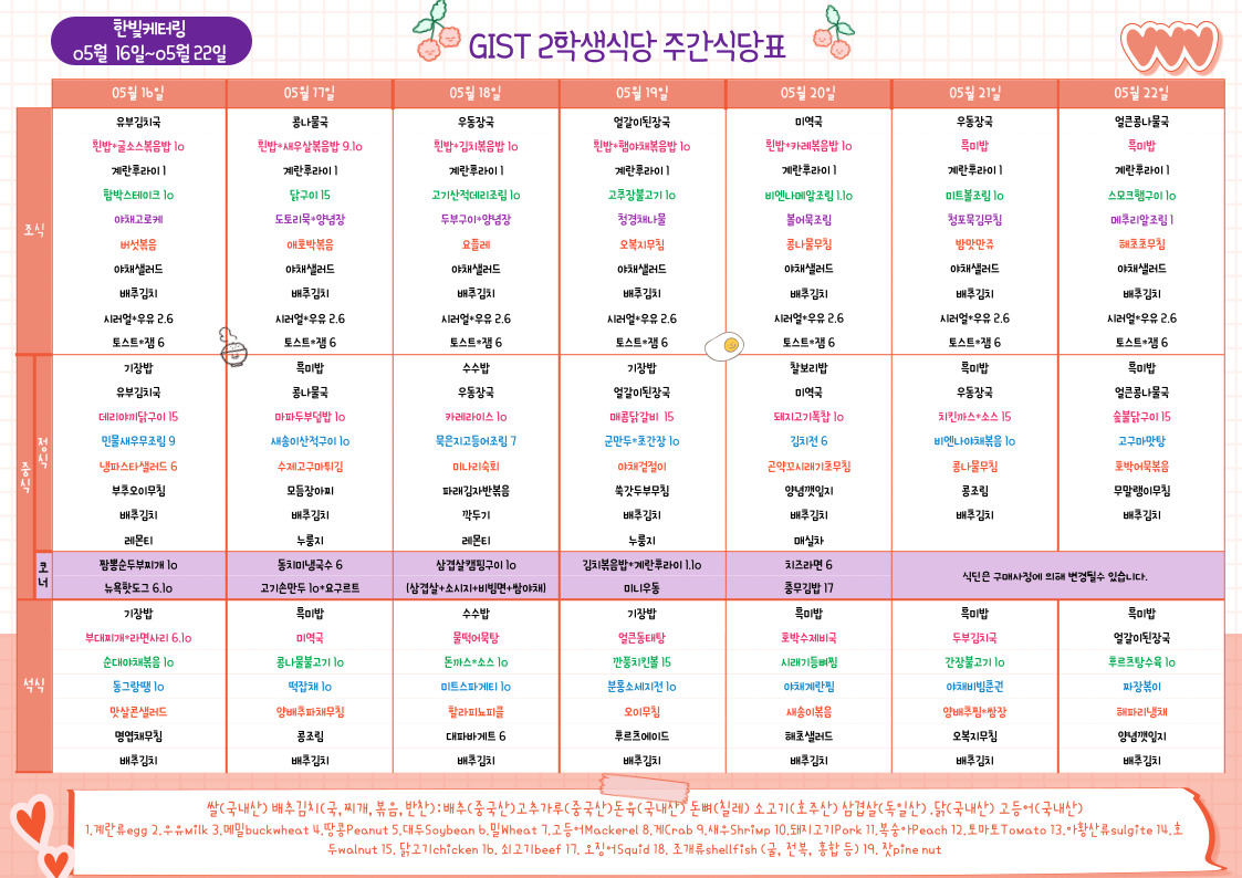 제2학생식당주간식단표(2022.05.16~22.05.22)