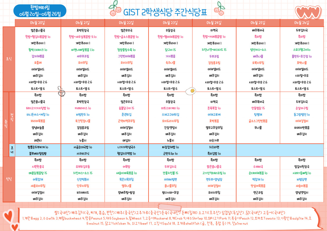 제2학생식당주간식단표(2022.06.20~22.06.26)