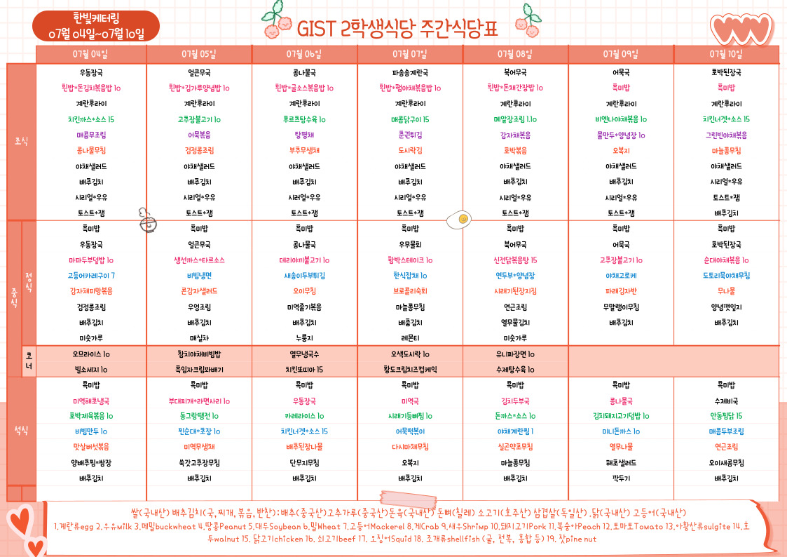제2학생식당주간식단표(2022.07.04~22.07.10)