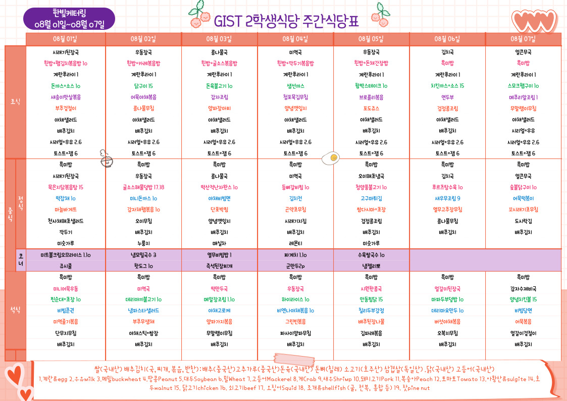 제2학생식당주간식단표(2022.08.01~22.08.07)