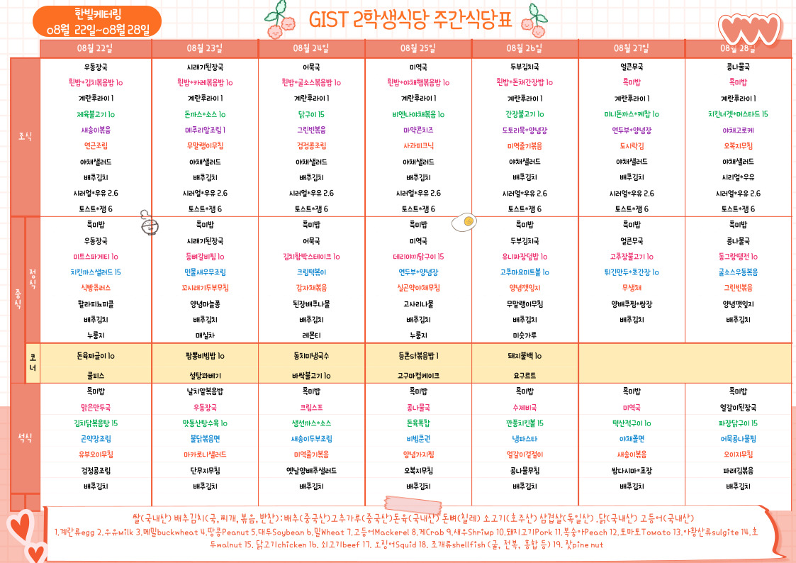제2학생식당주간식단표(2022.08.22~22.08.28)