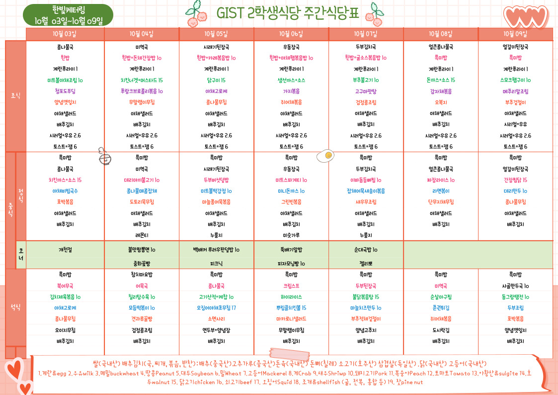 제2학생식당주간식단표(2022.10.03~22.10.09)