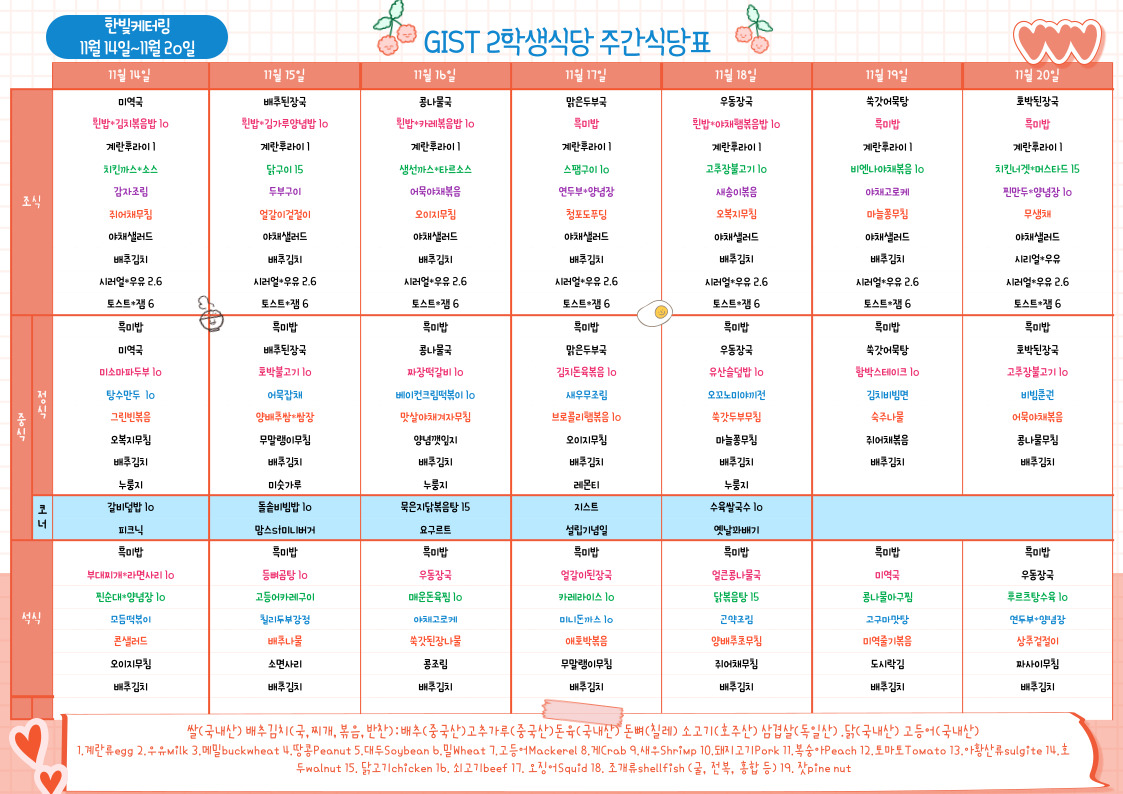 제2학생식당주간식단표(2022.11.14~22.11.20)