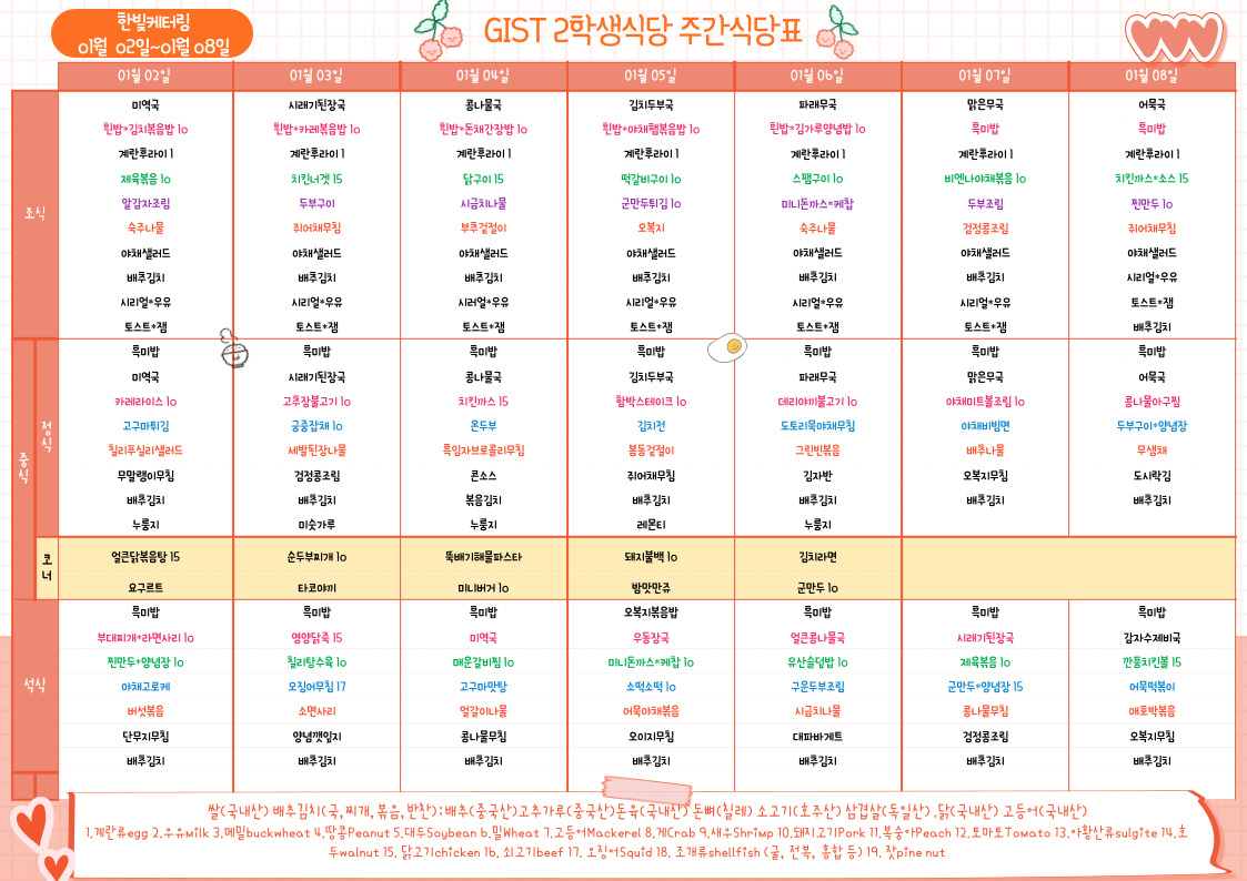 제2학생식당주간식단표(2023.01.02~23.01.08)