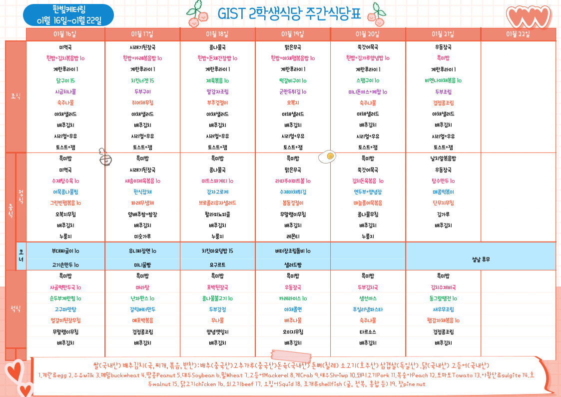 제2학생식당주간식단표(2023.01.16~23.01.22)
