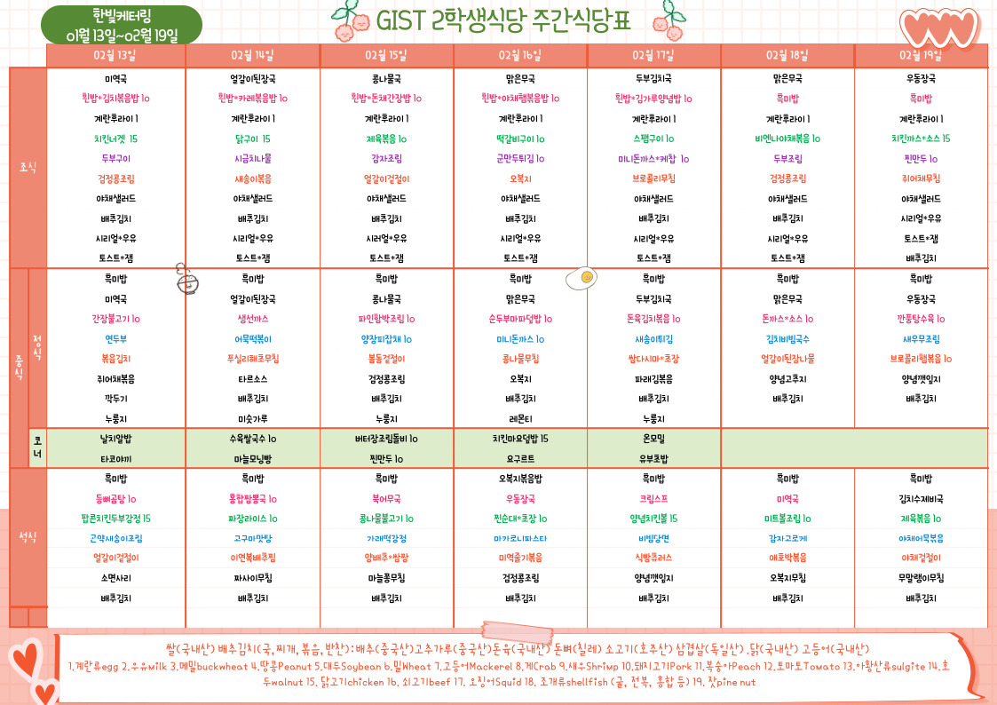 제2학생식당주간식단표(2023.02.13~23.02.19)