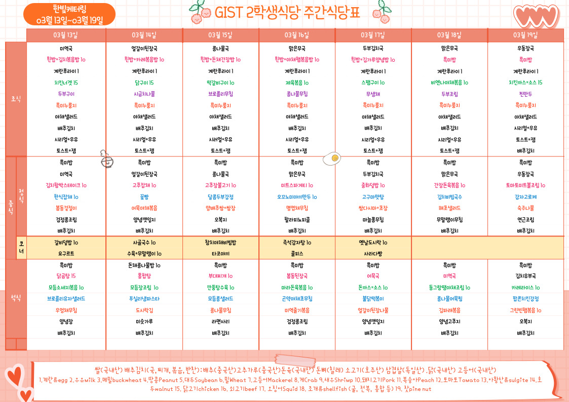 제2학생식당주간식단표(2023.3.13~23.03.19)