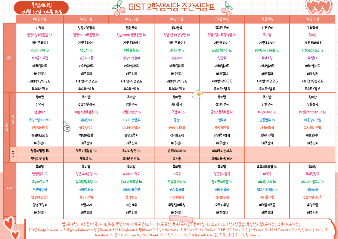 제2학생식당주간식단표(2023.4.10~23.04.16)
