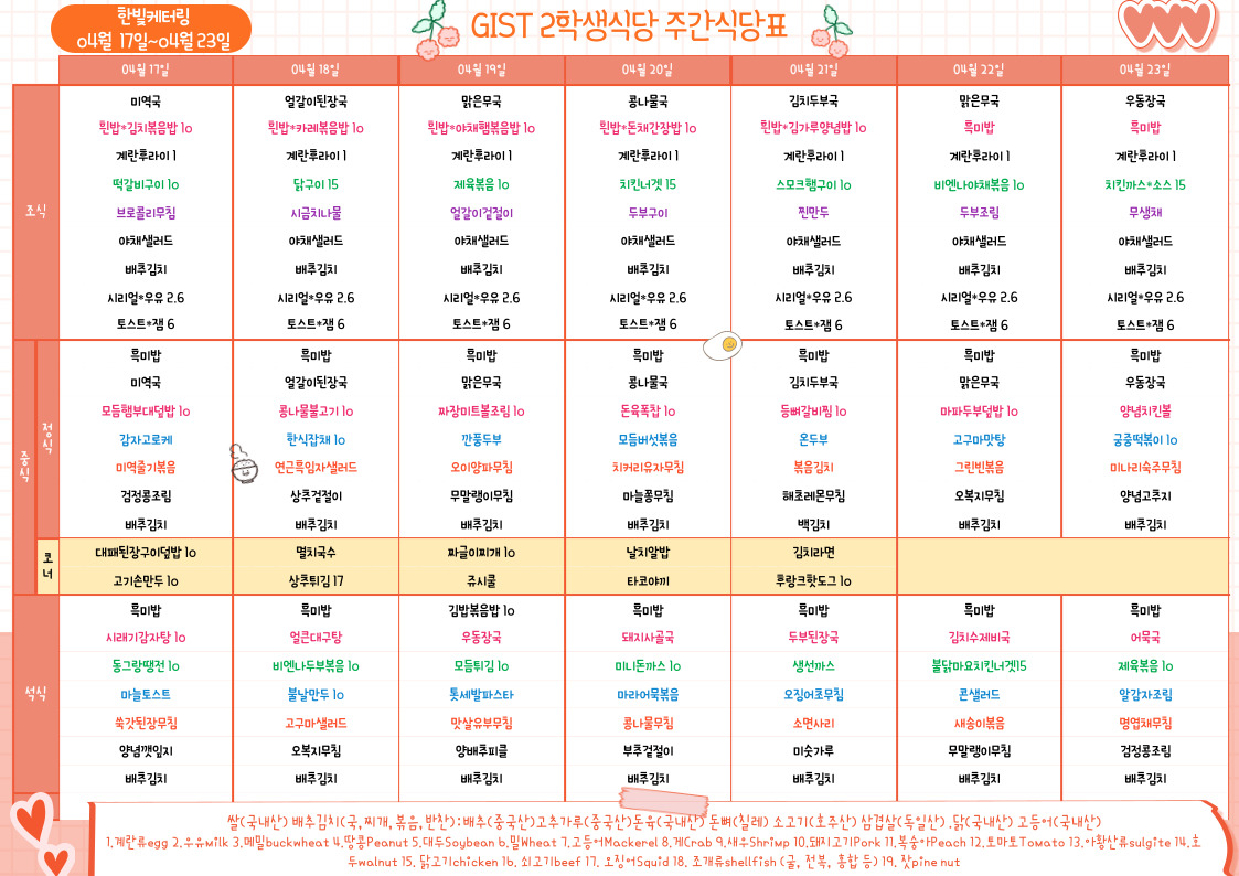 제2학생식당주간식단표(2023.4.17~23.04.23)