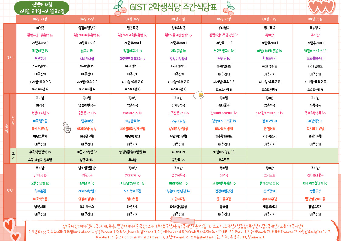 제2학생식당주간식단표(2023.4.24~23.04.30)