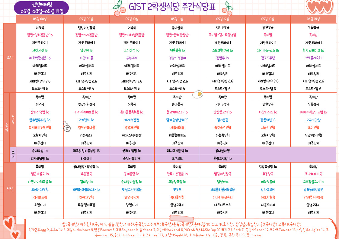 제2학생식당주간식단표(2023.5.08~23.05.14)