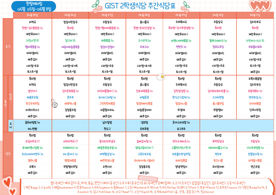 제2학생식당주간식단표(2023.6.05~23.06.11)