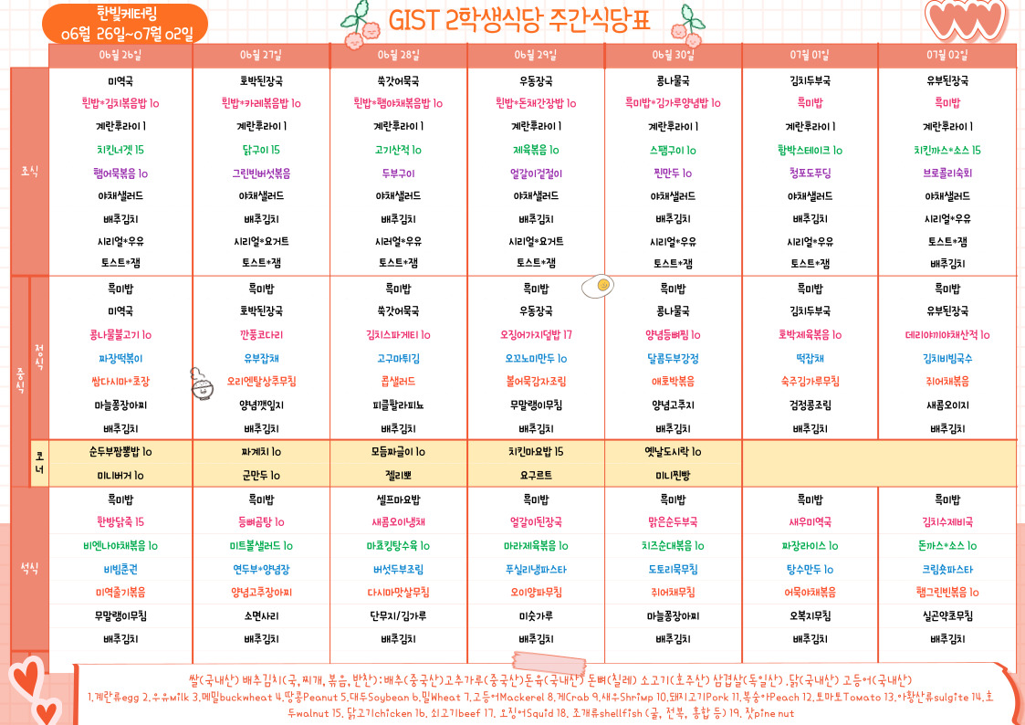 제2학생식당주간식단표(2023.6.26~23.07.02)