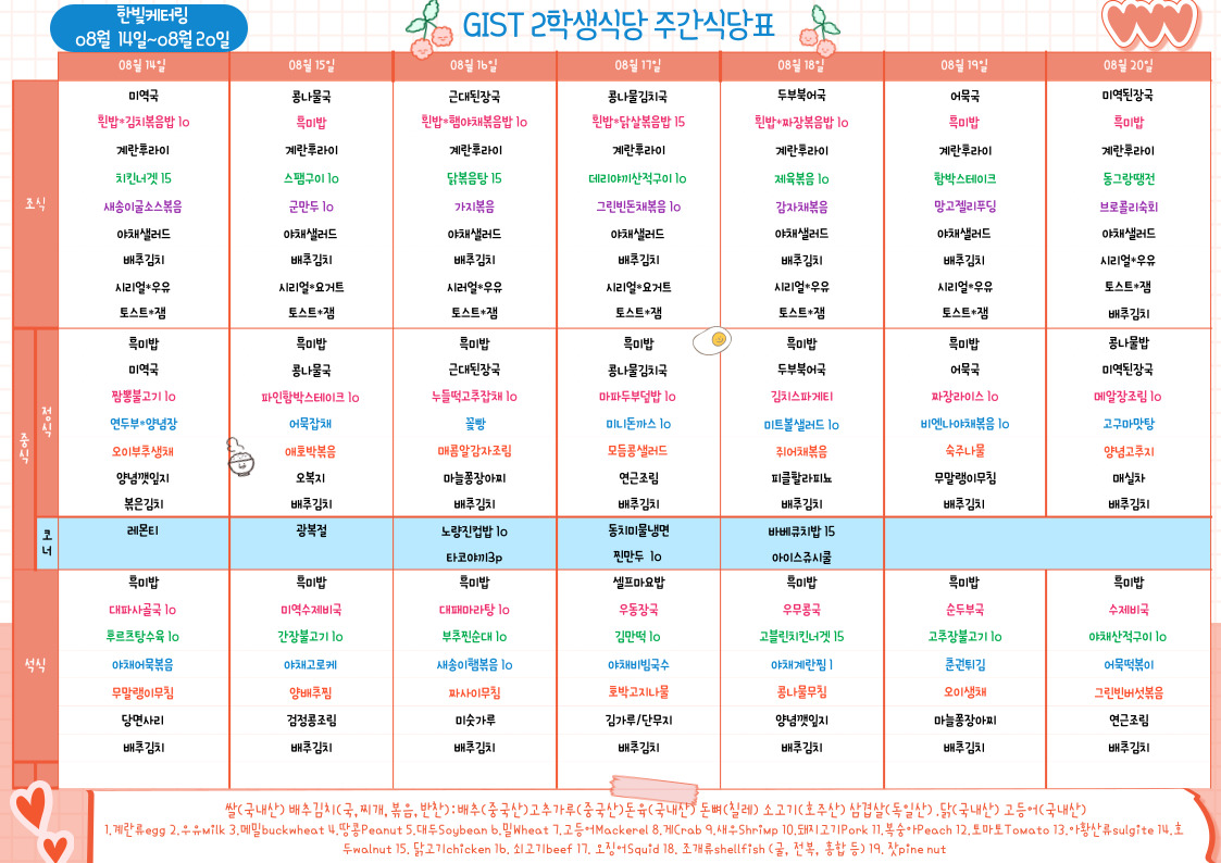 제2학생식당주간식단표(2023.08.14~23.08.20)