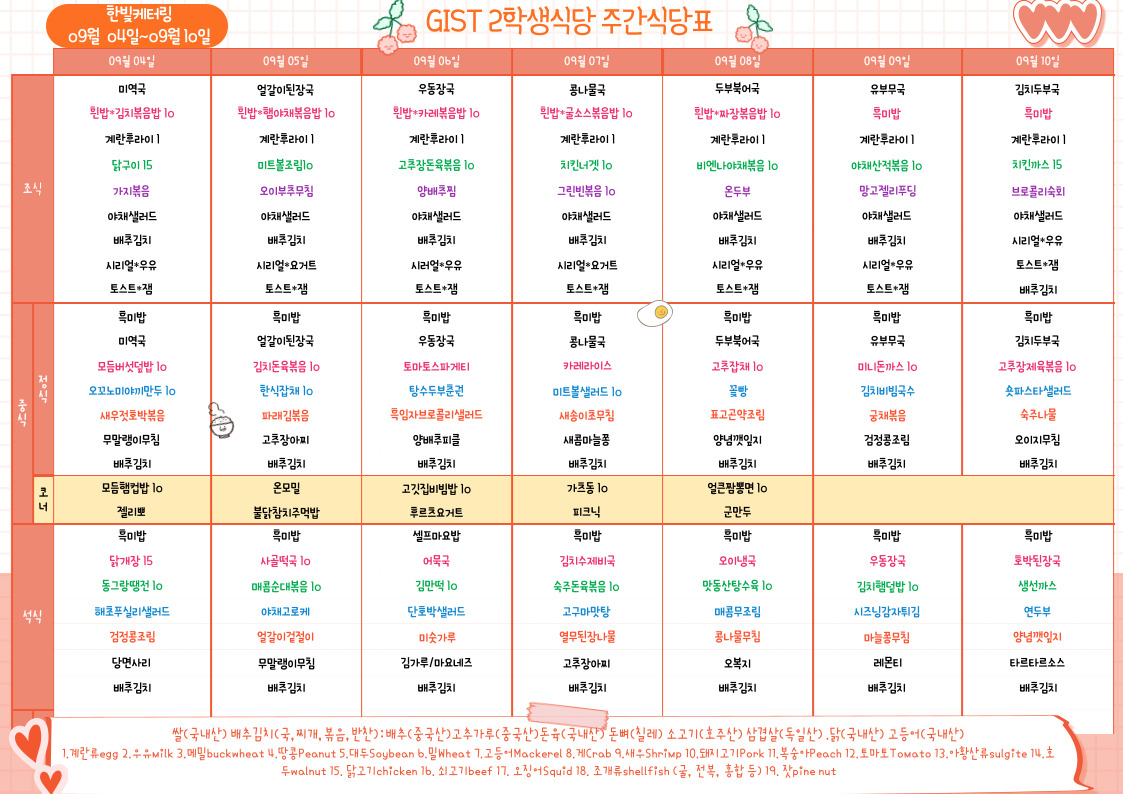 제2학생식당주간식단표(2023.09.04~23.09.10)