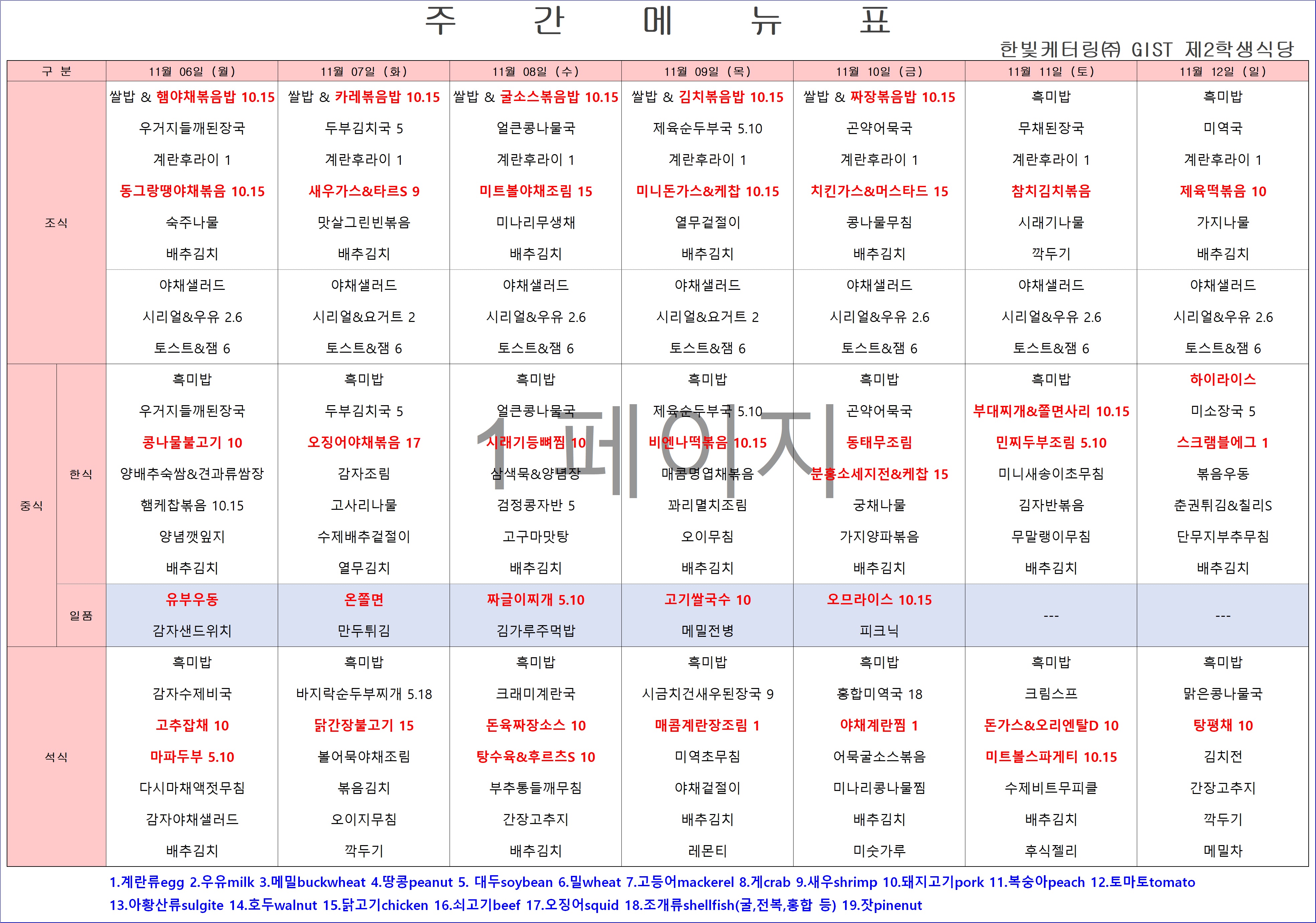 제2학생식당주간식단표(2023.11.06~23.11.12)