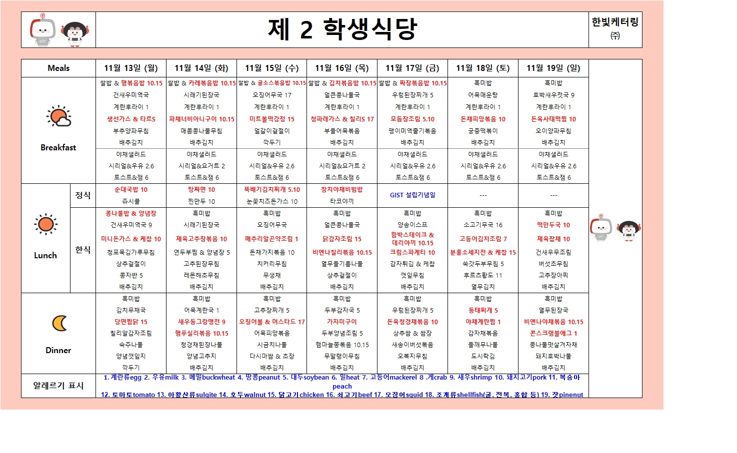 제2학생식당주간식단표(2023.11.13~23.11.19)