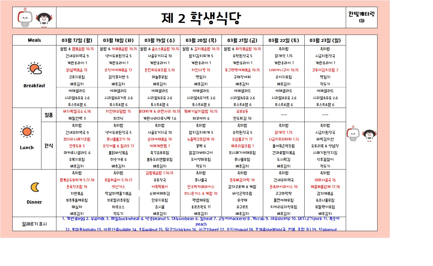 제2학생식당주간식단표(2025.03.17-2025.03.23)