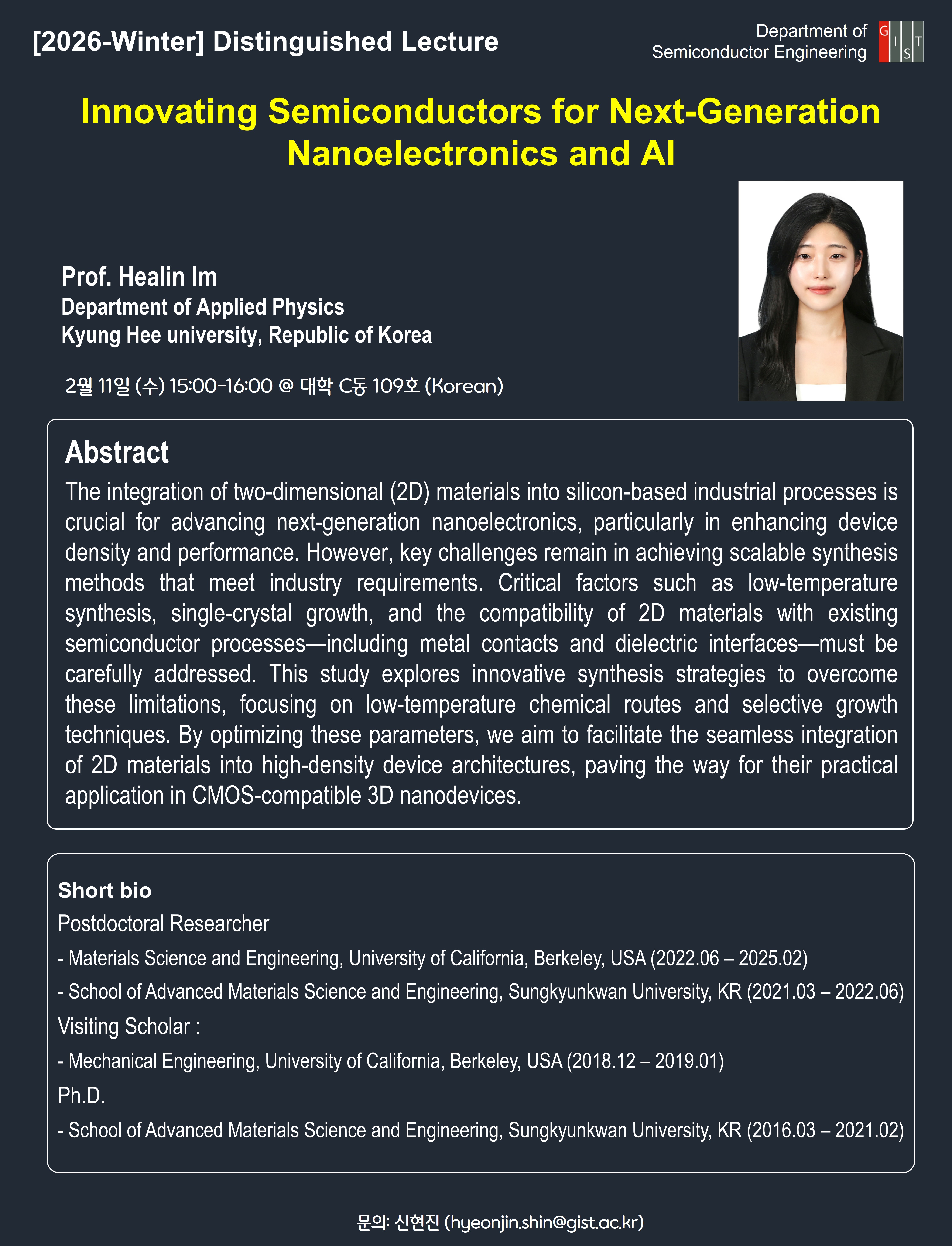 반도체공학과에서 세미나를 개최하오니, 관심 있는 분들의 많은 참여 바랍니다.