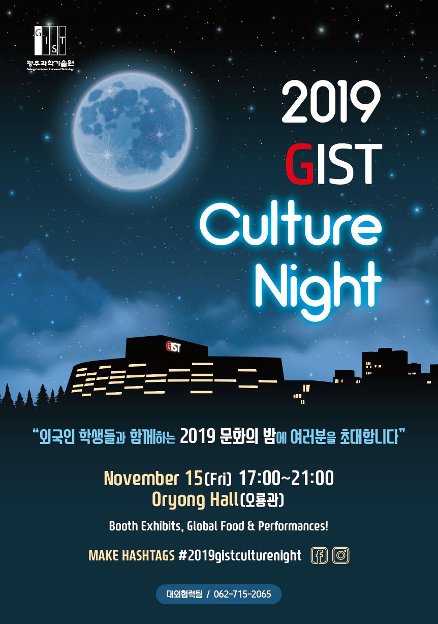 '2019 GIST 외국인 문화의 밤(GIST Culture Night)' 행사를 안내드립니다.