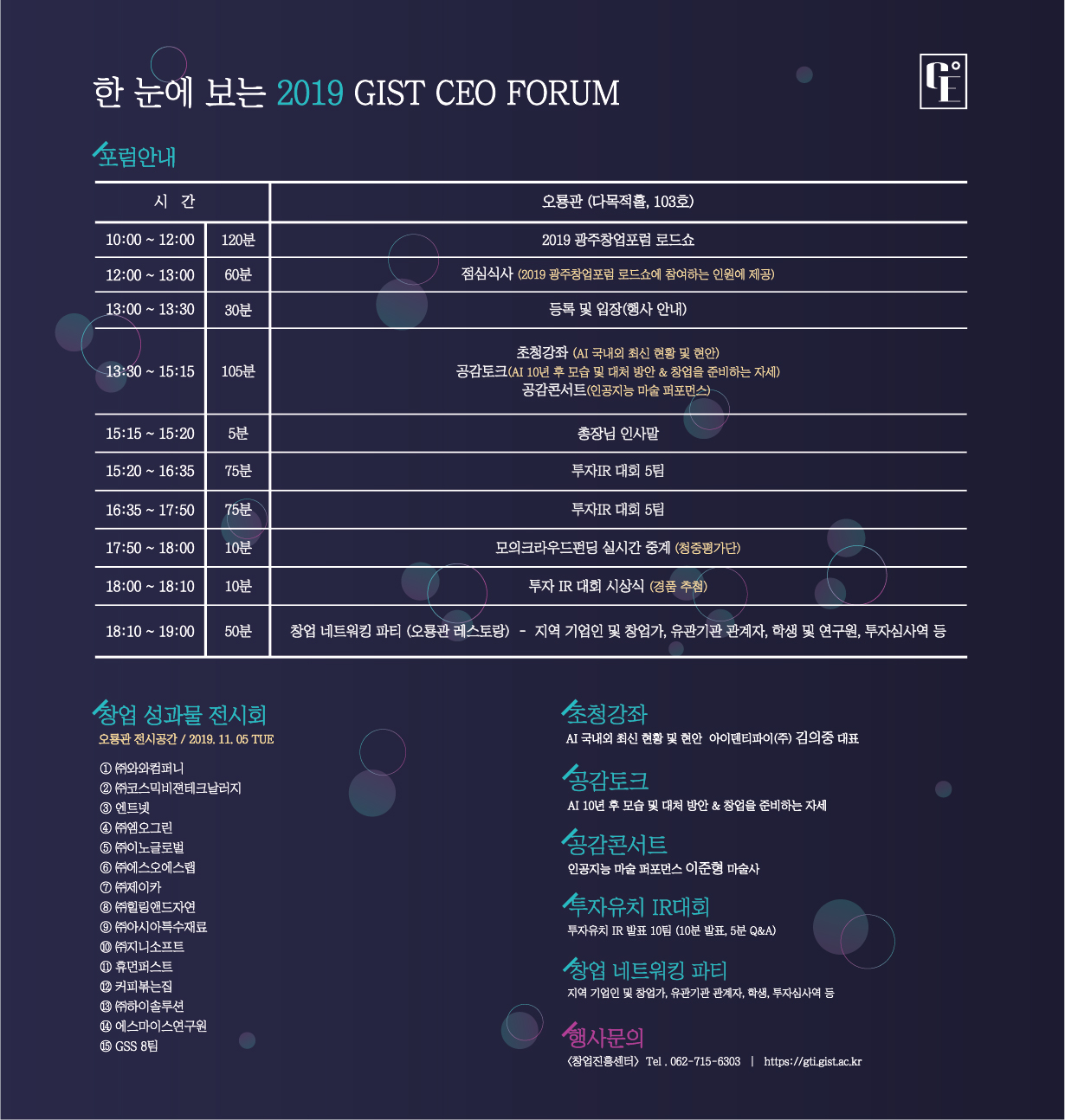 (창업진흥센터) 2019 GIST CEO FORUM(11/5(화)) 안내