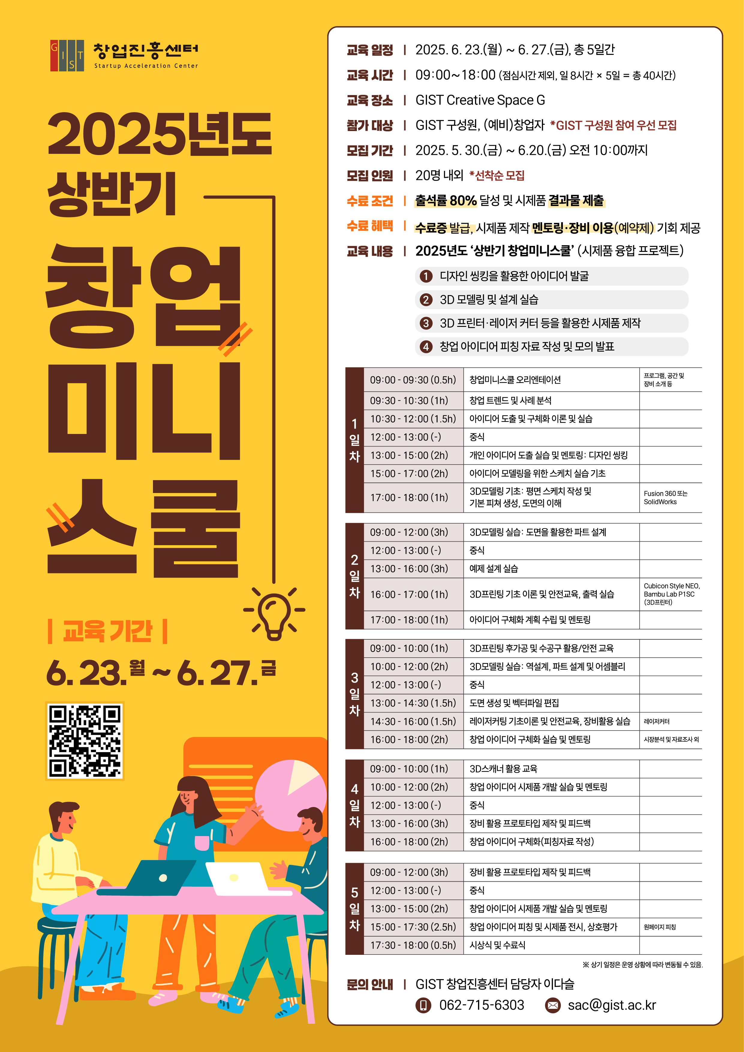 - 기타문의: 창업진흥센터 담당자 sac@gist.ac.kr / 062-715-6303