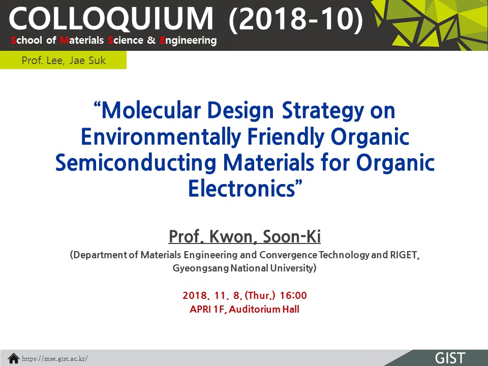 * Speaker: Prof. Kwon, Soon-Ki(Gyeongsang National University)
