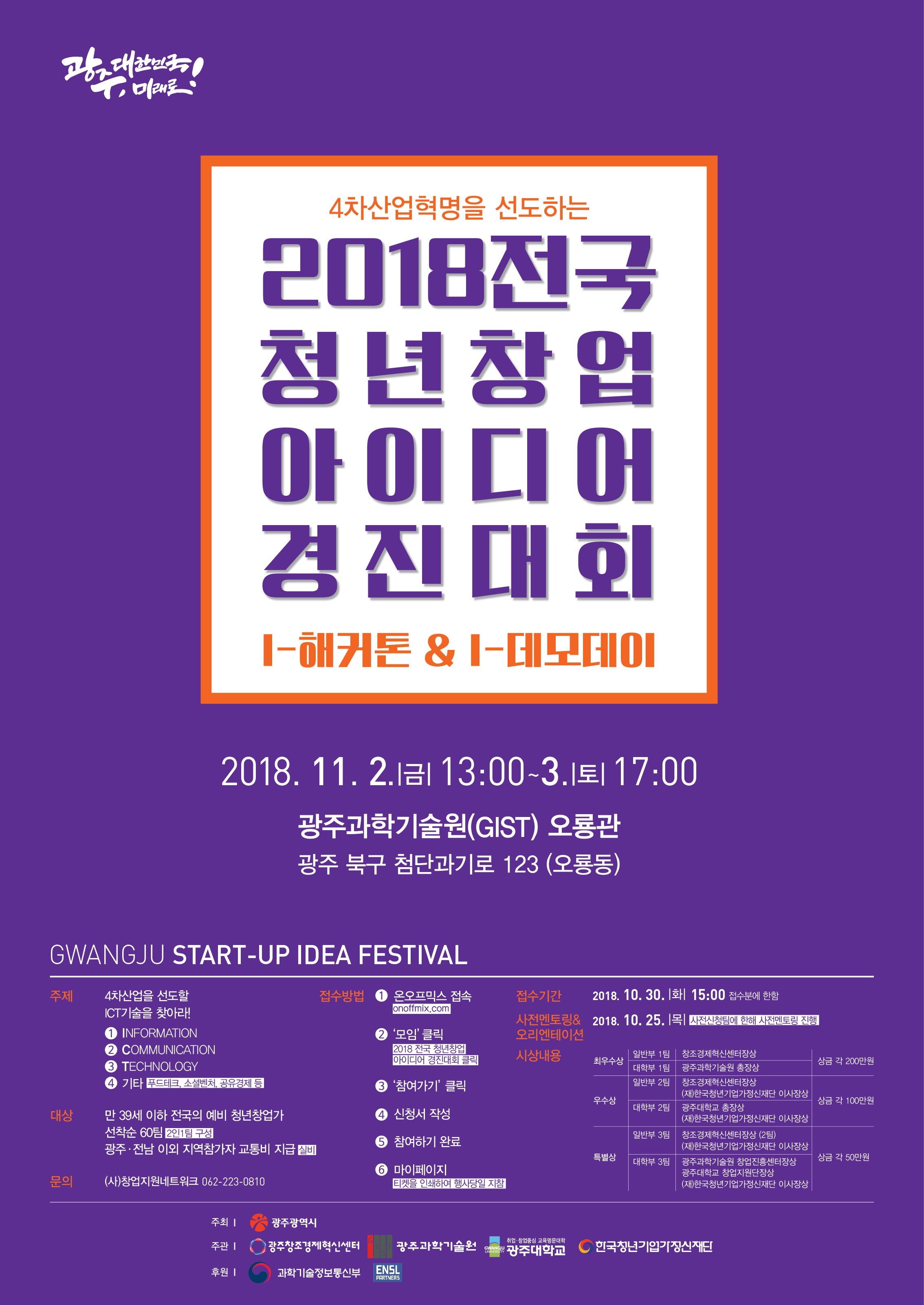 ❍ 주관 : 광주과학기술원, 광주창조경제혁신센터, 광주대학교, (재)한국청년기업가재단