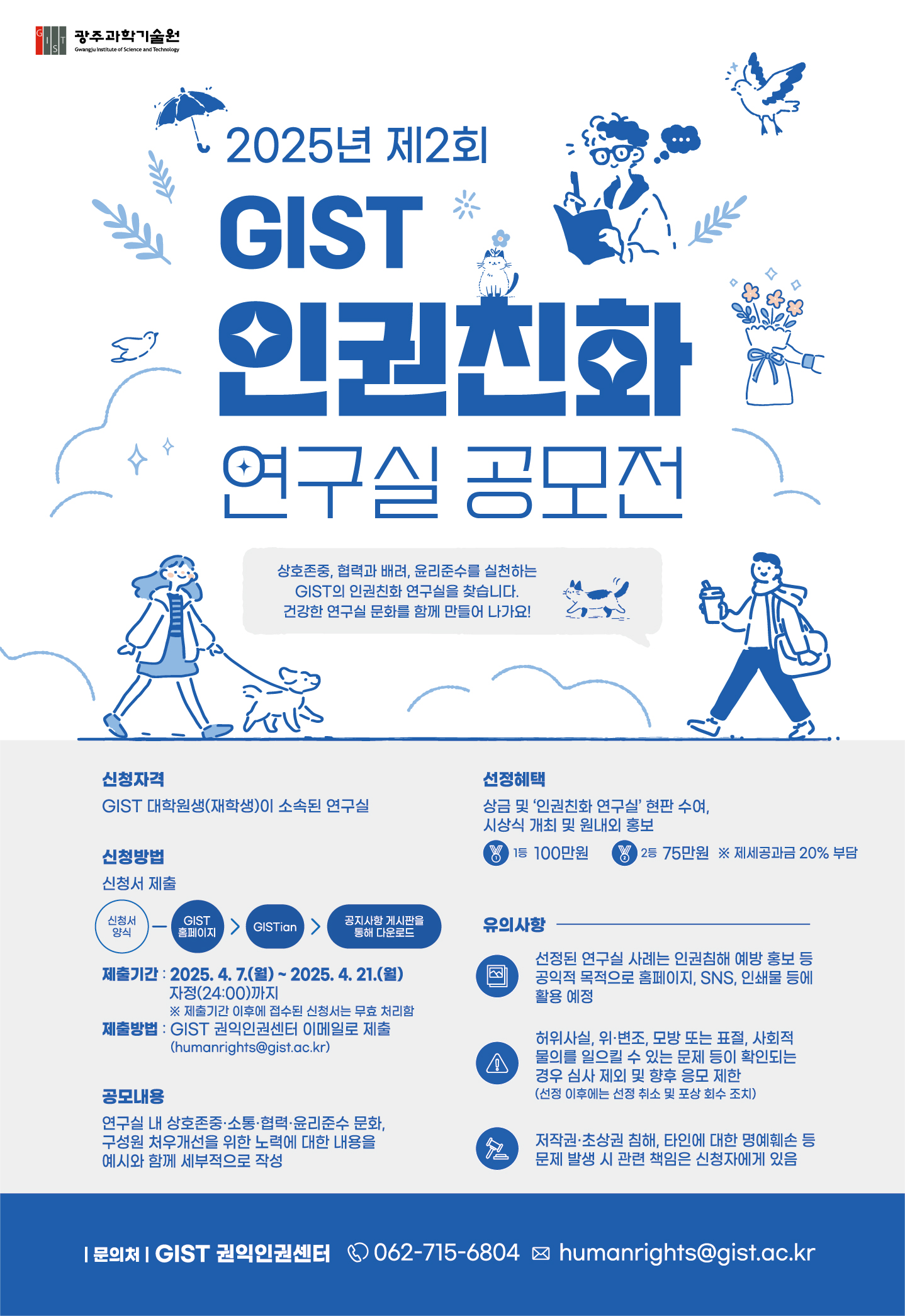 「2025년 제2회 GIST 인권친화 연구실 공모전」 개최를 안내합니다.
