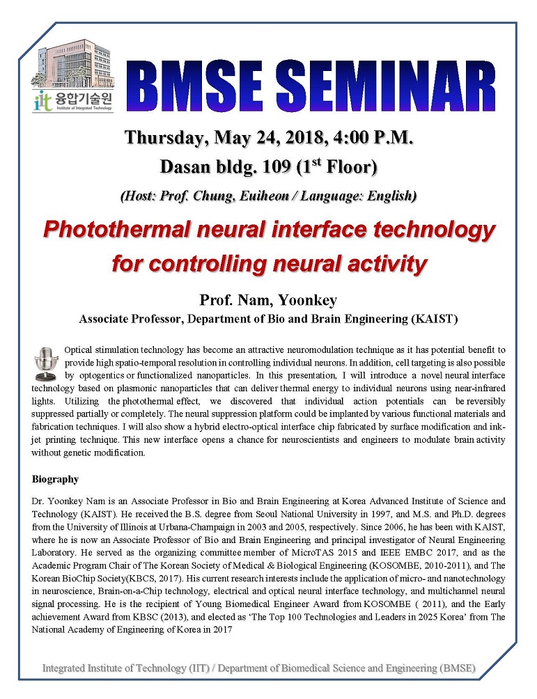 - 연사: Prof. Nam, Yoonkey (KAIST)