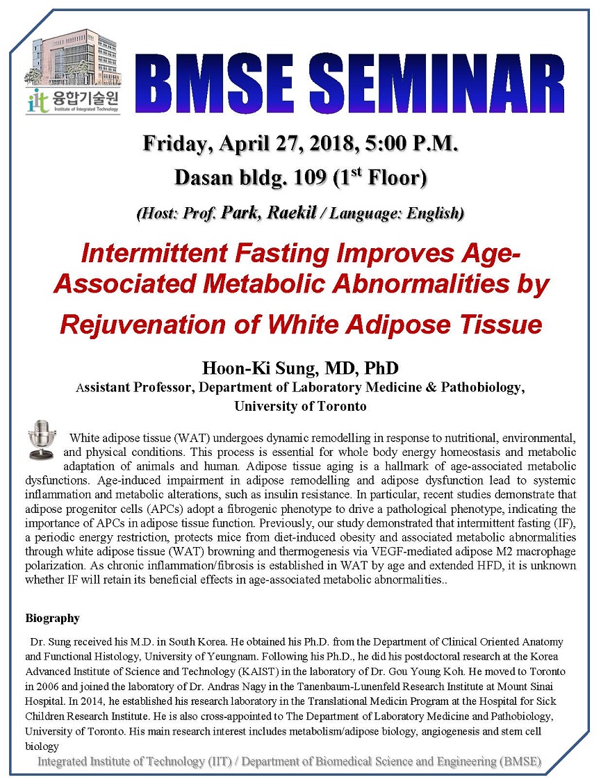 - 연사: Hoon-Ki Sung, MD, PhD(University of Toront)