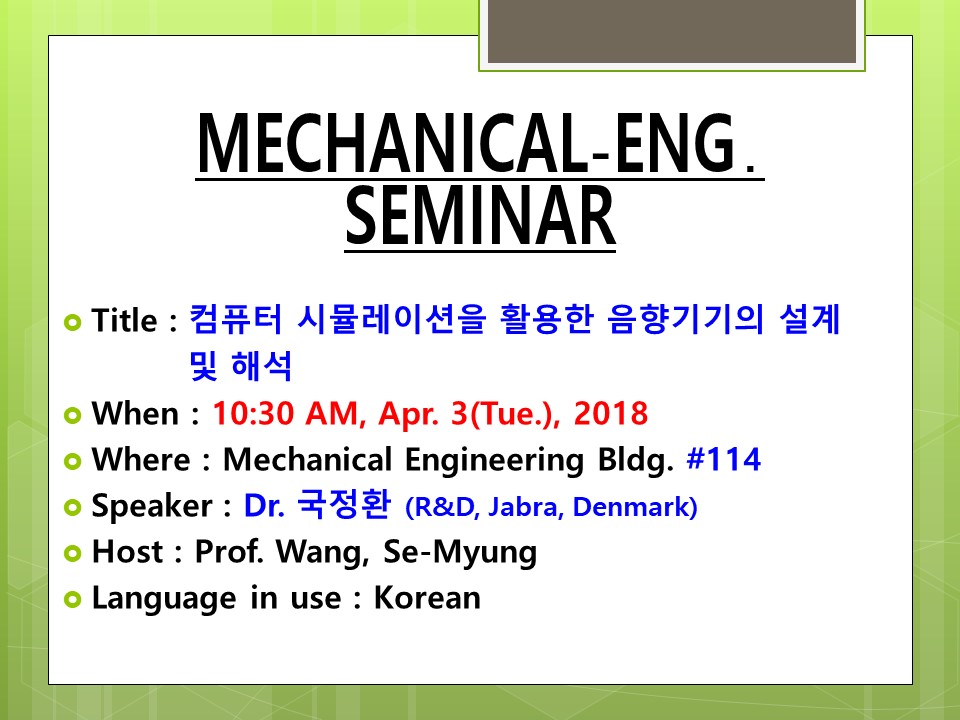 열람중 [04/03(Tue.) 10:30] ME Seminar 김수연 2018-03-22 3202 첨부파일 다운로드