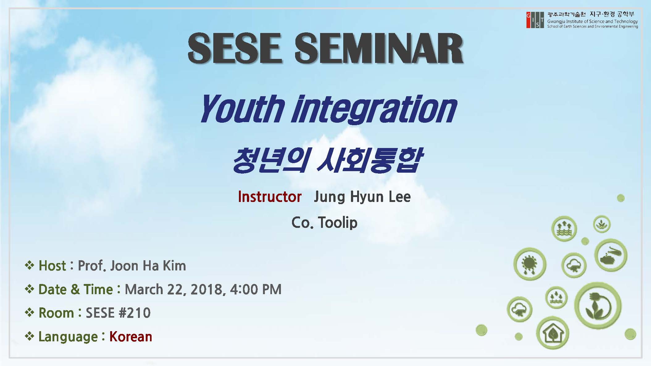 [지구환경공학부 Seminar] 2018.03.22.(Thu.) 4PM/ Instructor Jung Hyun Lee