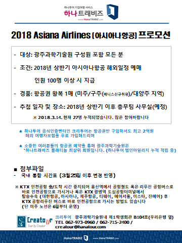 2018 Asiana Airlines(아시아나항공) 프로모션