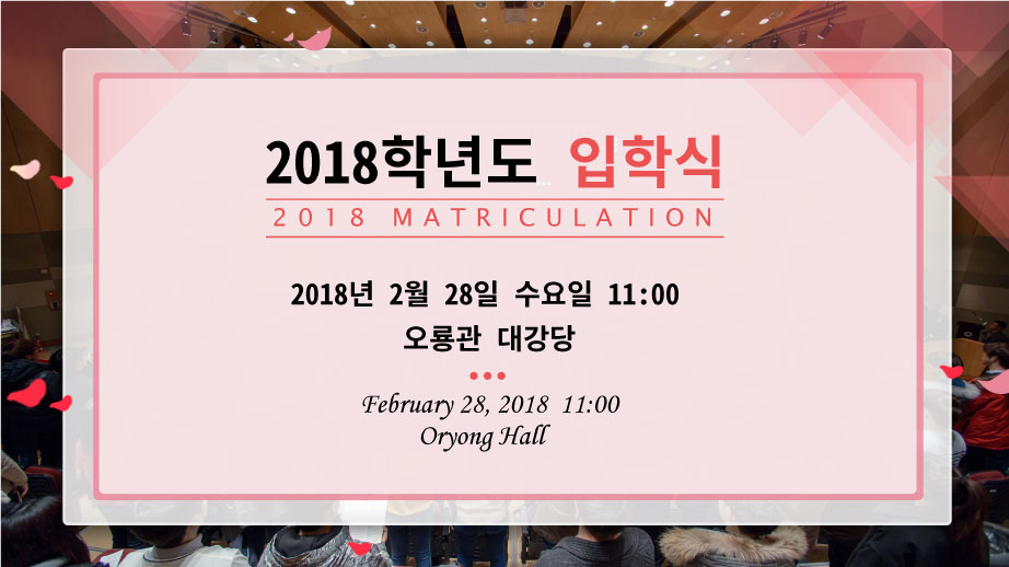 | 열람중 | 2018학년도 입학식 개최 안내(2.28.(수)) | 최상민 | 2018-02-22 | 3944 |