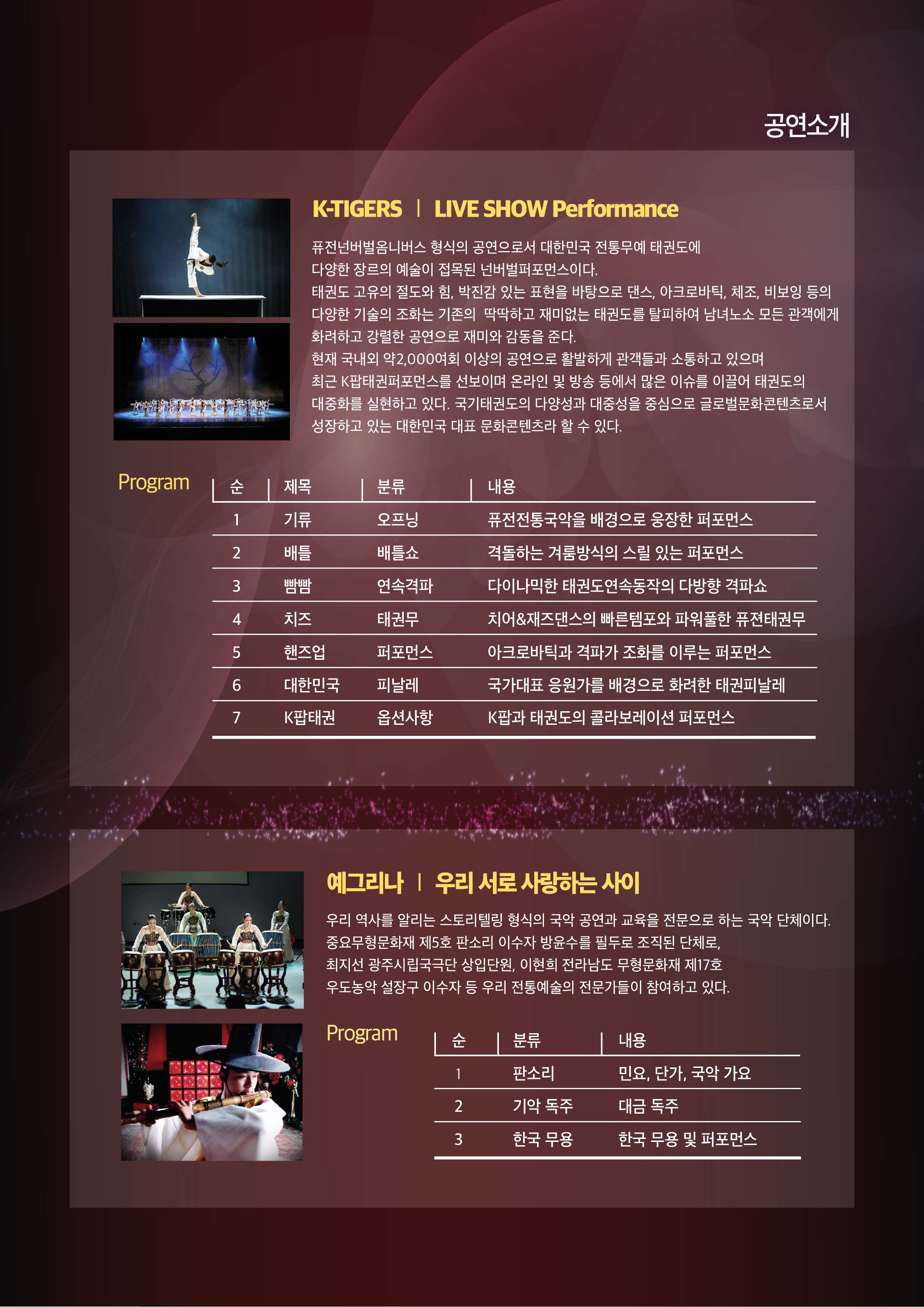 4. 공연팀 및 공연프로그램: