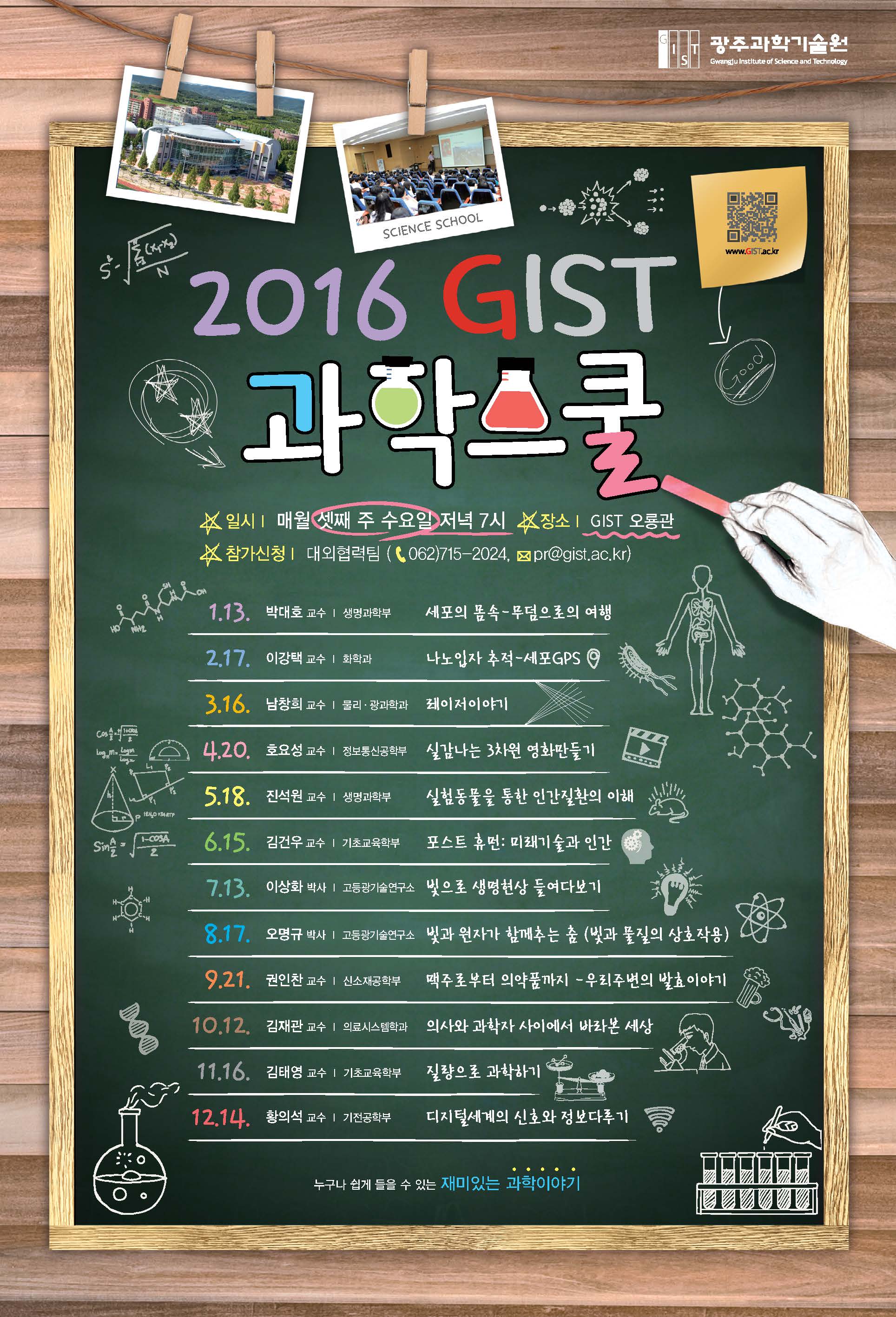 2016년 GIST 과학스쿨이 매월 셋째 주 수요일 개최됩니다.